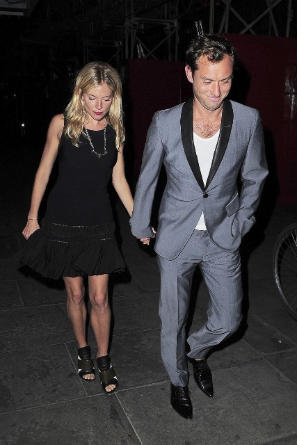 There was a double date that happened last night in London – RDJ and his wife with Jude Law and Sienna Miller. Jude, as you can see, was dressed for it. But not like Victoria Beckham. No one dresses for dinner to blind all other diners like Victoria Beckham. Not even Sienna.