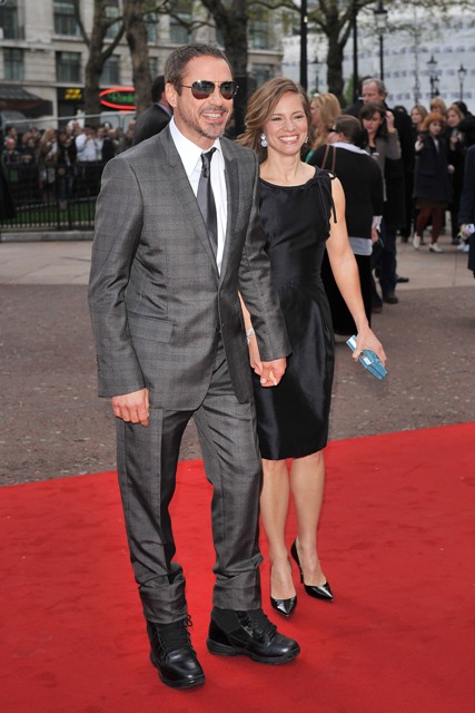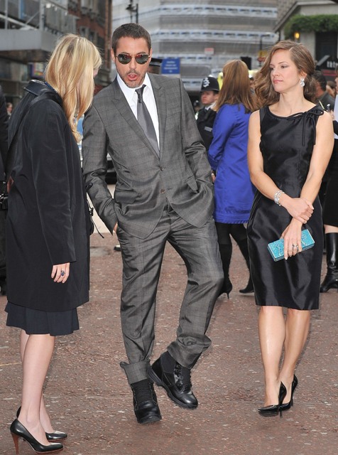 Here are Robert Downey Jr and Terrence Howard on the carpet at the London premiere yesterday. Not sure what’s going on with RDJ’s shoes but it works for me. He works for me. Sexy bitch.
