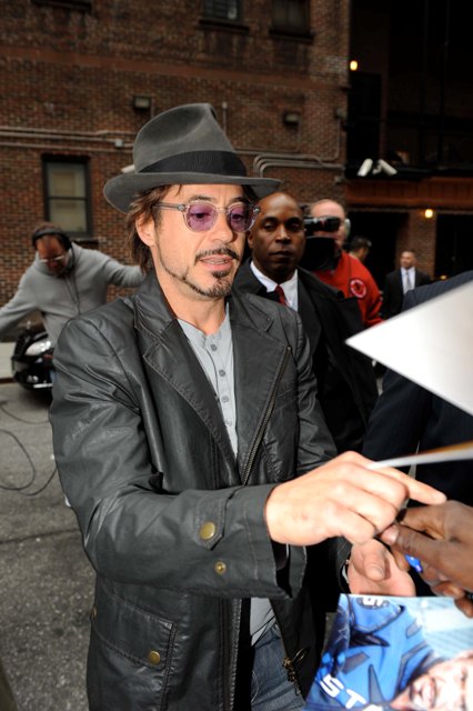 Here’s RDJ arriving at Letterman, all sexy steeze and personality in advance of the May 7th release of what’s expected to be one of the biggest hits of the summer. I will queue for Iron Man 2. Will you?