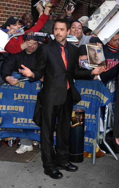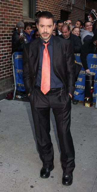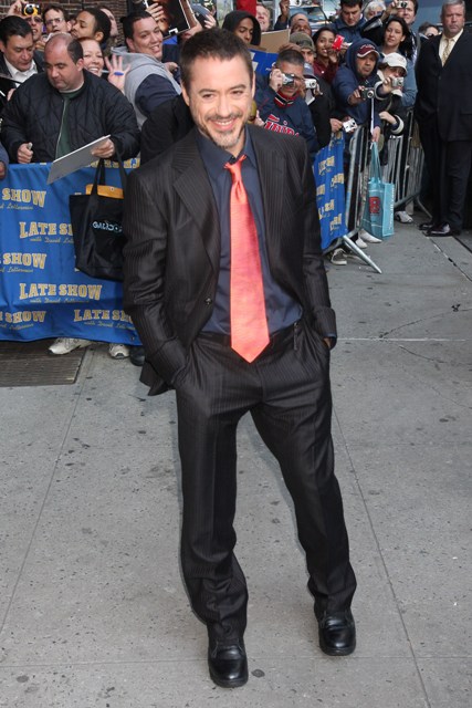 Here’s a taste of RDJ’s quiver yesterday as he arrived to tape Letterman, rocking that suit and wearing the sh*t out of those pants.