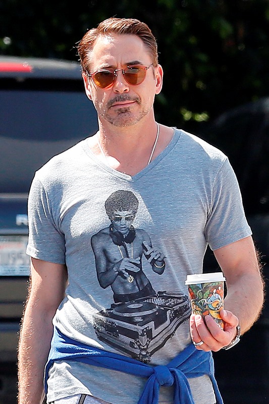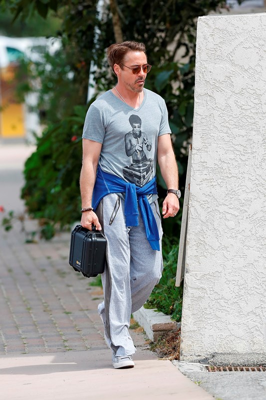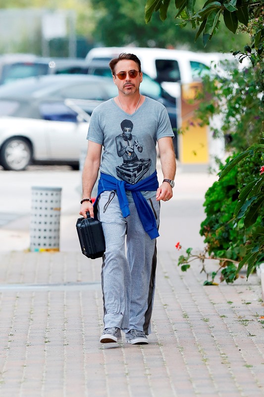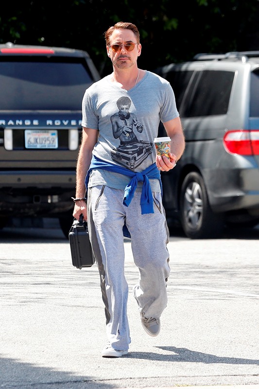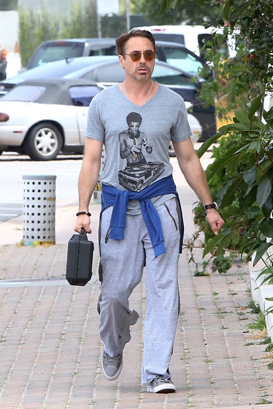 Here’s RDJ in Malibu yesterday with his lunch box of vitamins, looking pretty fit as he gets ready to start working on Avengers 2, if he hasn’t already. They were in Europe on location the last few weeks and that seemed to be mostly Jeremy Renner, Elizabeth Olsen, Aaron Johnson, and Chris Evans. My guess is that out of all of them, RDJ gets to work the least while getting as much screen time – and cash money! – as possible.