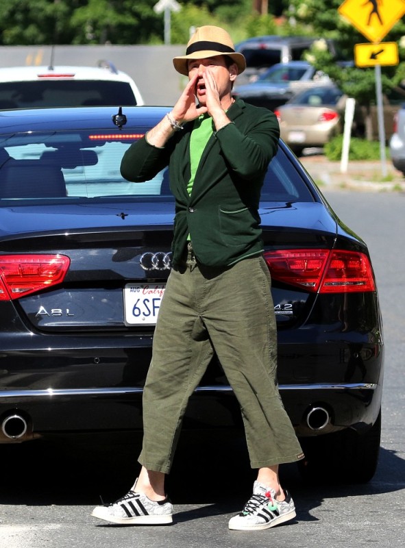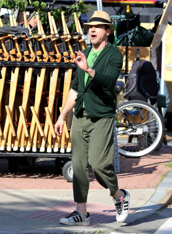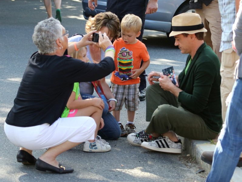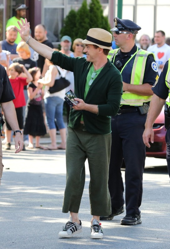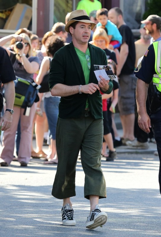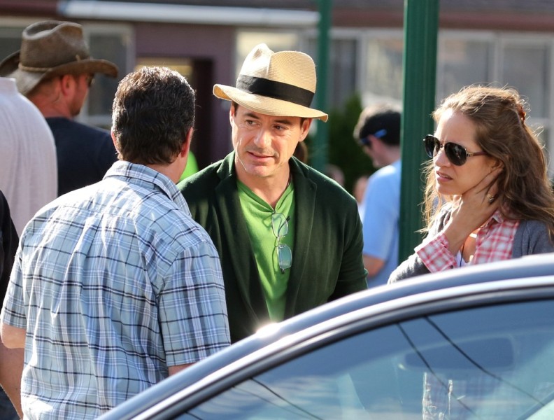 Here’s RDJ with Susan, in a very green mood, on the set of The Judge yesterday in Mills Falls, MA. Only RDJ in those pants, right? Only RDJ. Especially when he’s being so awesome with that kid.