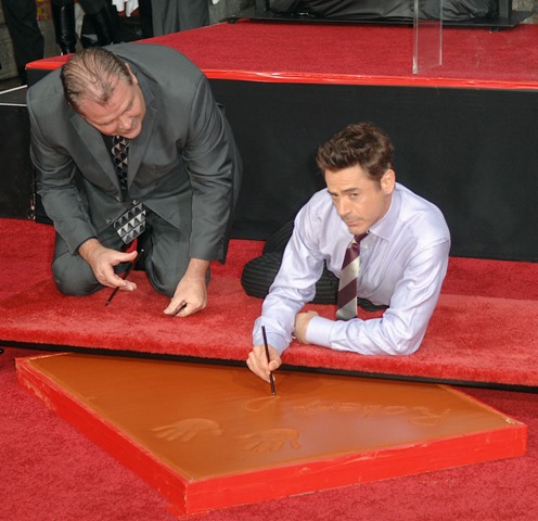 At his Hand and Footprint ceremony yesterday, well timed of course to coincide with the momentum building in advance of Sherlock Holmes.