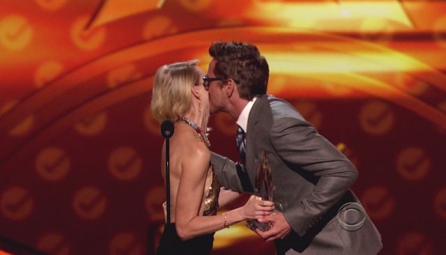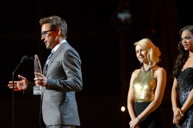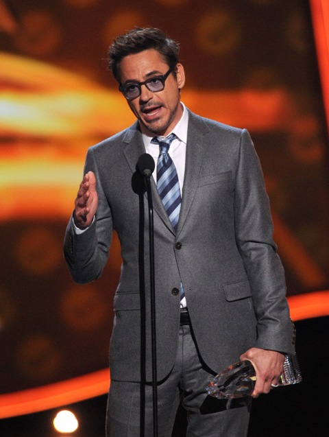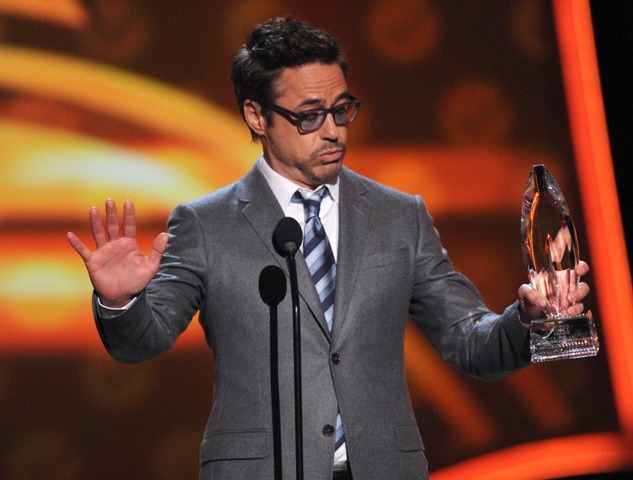 Last night on stage at the People’s Choice Awards, accepting his trophy for Favorite Male Movie Actor, Robert Downey Jr. stopped to say, “Naomi Watts is so fantastic in The Impossible, by the way, I just want to hand it to her right now. Easily one of my favorite performances of the year.”