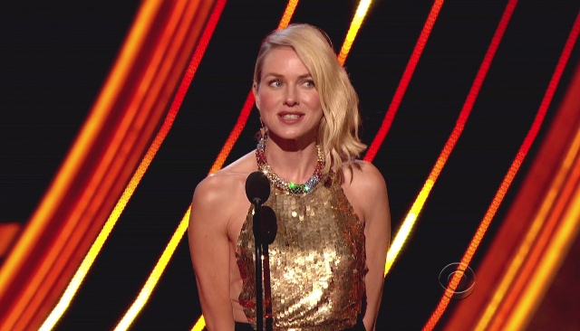 Watts is a real threat in that category, but she still has some work to do. I’ve never been sold on Jennifer Lawrence as an inevitable winner for Silver Linings Playbook—the Academy denied Kate Winslet at the same stage in her career—and while Jessica Chastain may be the current favorite, Zero Dark Thirty came up a little short this morning and it’s getting hammered on the political angle. The Academy isn’t in love with it the way they were with The Hurt Locker, which could blow back onto Chastain. The door is open for Watts, and RDJ is standing with her, practically declaring who he’ll be voting for. (Lainey: as Jennifer Lawrence watched from the audience!) Will the Academy follow suit?