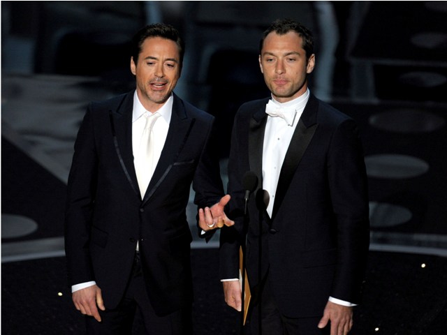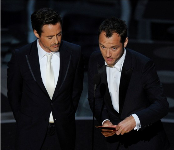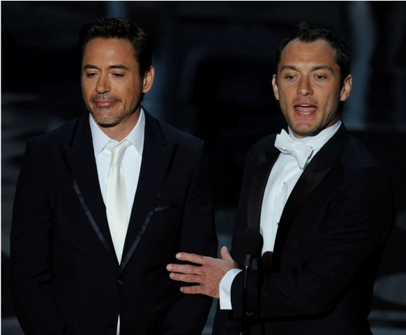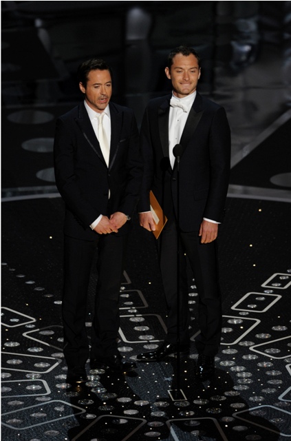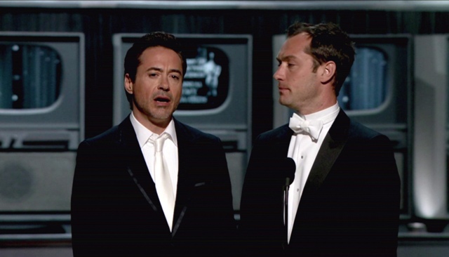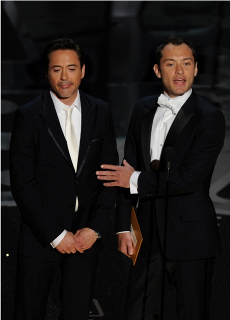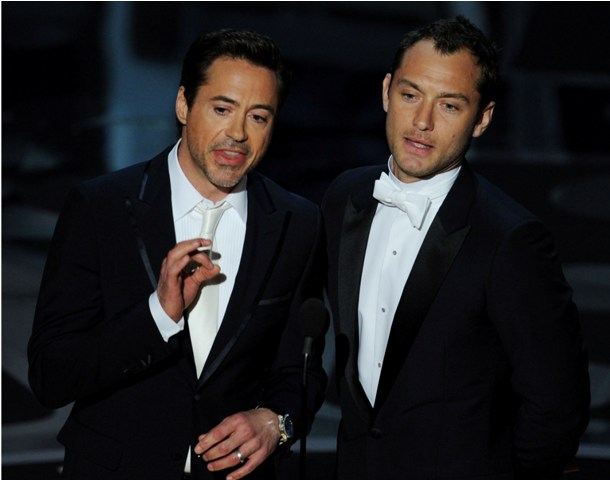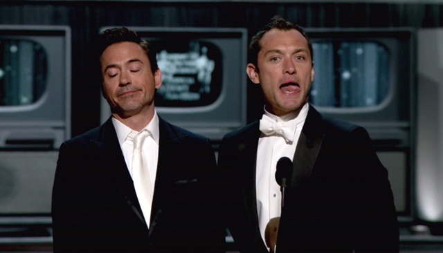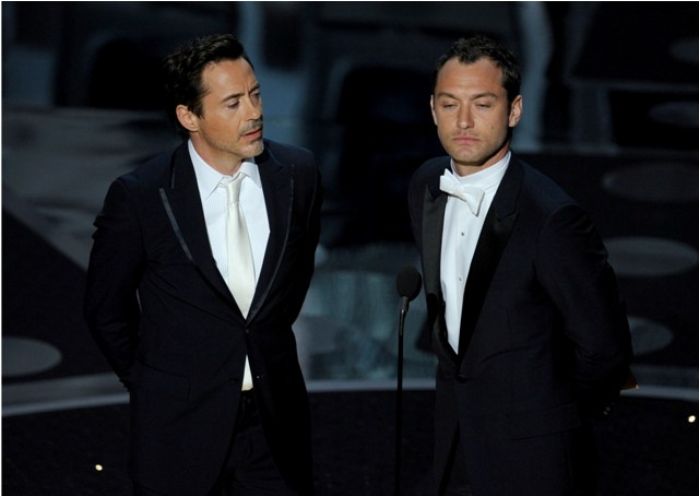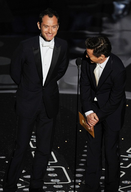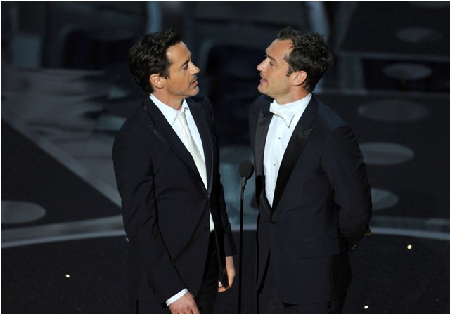 RDJ should host the Oscars. Some of you suggested he should host with Sandra Bullock. Yeah I could get down with that. Neither of them needs it though. And they might be too big for it anyway. But sometimes it’s too short, you know? Watching him for 3 minutes, how he always hits the right note – funny, a little acerbic, but also self-deprecating – it’s much too short. And it was certainly much too short while he was up there with Jude Law, teasing us like they were about to kiss.