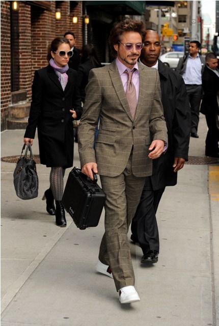 RDJ left Letterman with his ubiquitous lunch box yesterday. I know it’s not really a lunch box but I like calling it one. Sounds better than his “camera case in which he stores his vitamins which is not a euphemism for drugs, he really does take a lot of vitamins”.