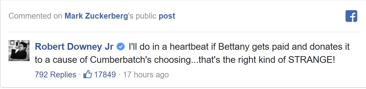 Anyway, Mark posted on Facebook yesterday asking his followers who should voice his AI. And look who responded: