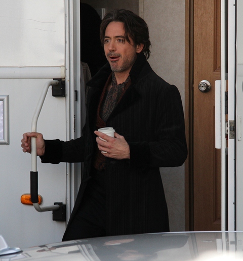 This is RDJ in England on the set of Sherlock Holmes, continuing with reshoots today and, happily it seems, not dressed up as Fu Manchu. RDJ’s wife Susan is pregnant with their first child. His son Indio just turned 18. There were rumours that Indio was dating Tallulah Willis for a while. Not sure how legit that was and besides, I feel like these days, or maybe all days, every teenager dates everyone they know for 5 minutes anyway.