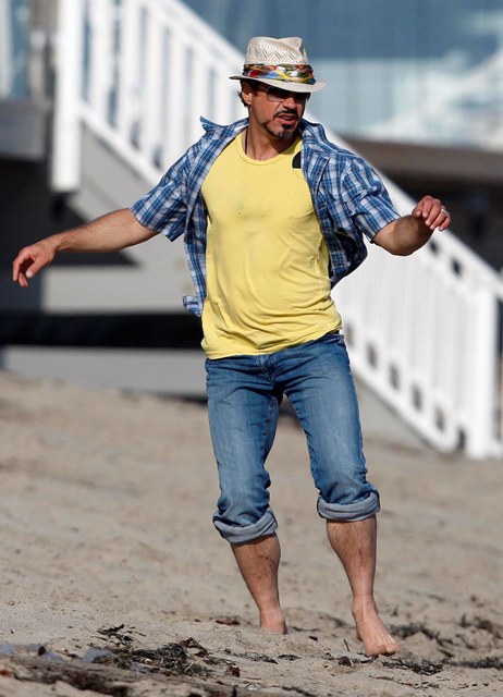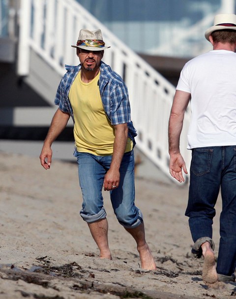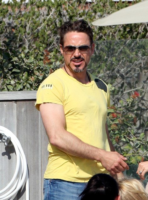 Various photos attached of Robert Downey Jr enjoying down time after weeks of shooting the sequel and working out like a motherf-cker. Word is atmosphere on the set is great. Everyone is getting along, Don Cheadle fits right in. But both Jon Favreau and RDJ are definitely feeling the pressure to deliver the second time around. It’s one thing to make it good, it’s another to be “trying too hard”. This has been their challenge so far.