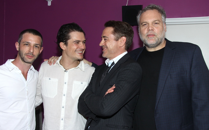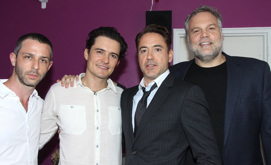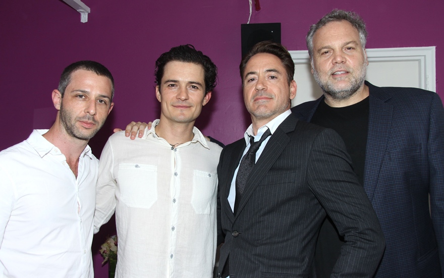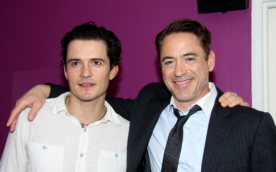 They posed for pictures last night on Broadway backstage after a preview performance of Romeo & Juliet. The play opens in two weeks. This is Bloom’s debut on The Great White Way as he attempt to revive his career. It’s a smart decision. Shakespeare is a good decision. And he’s certainly beautiful enough to be Romeo. Having RDJ on your side certainly doesn’t hurt either.