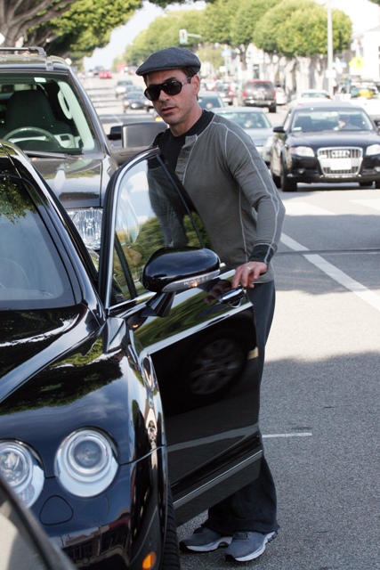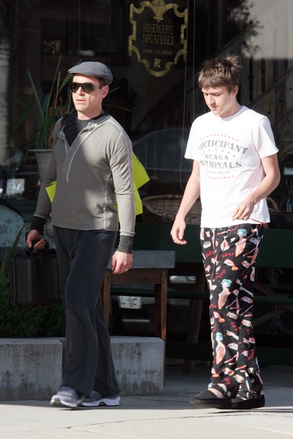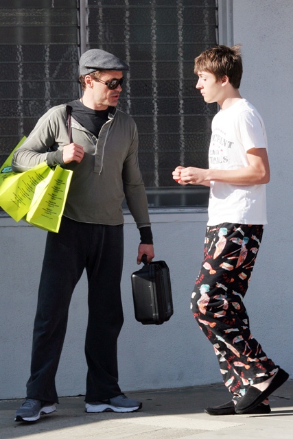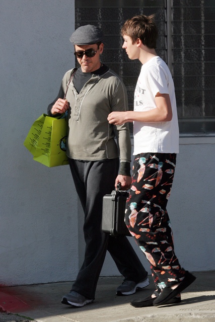 RDJ and his son Indio out shopping yesterday at Planet Blue. These pictures, they kill me. His jaunty cap, something about the way he’s wearing his sweats, Indio’s pants, pants only a 15 year old growing up in Hollywood understands – I guess? – and finally…
