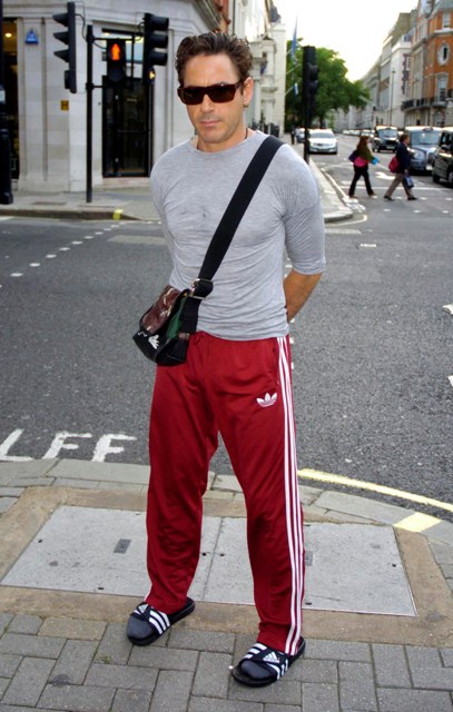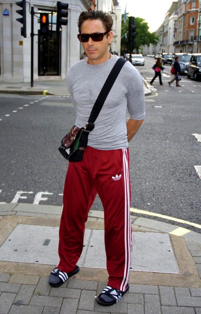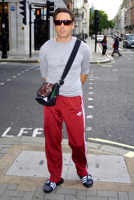 I never want to see these pants on a man who brings the quiver. Not only because these pants are usually associated with douchebags and thick chains riding around in tricked out Hondas blasting Flo Rida so loud the ground shakes down the entire block but also because these pants, they bulge in weird places, they catch the light from odd angles, they pinch in the wrong corners, and like a pervert your eyes are always drawn to the groin and then you’re trying to make out penis shapes and this is not what I want from my RDJ.