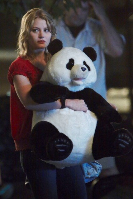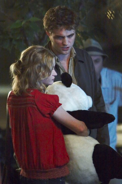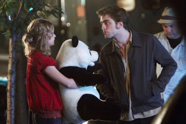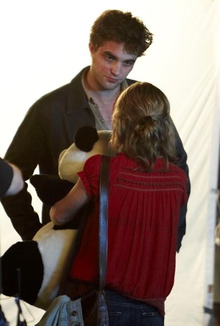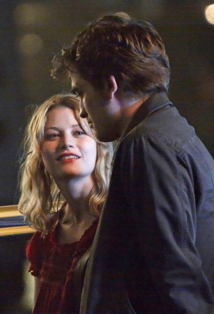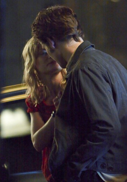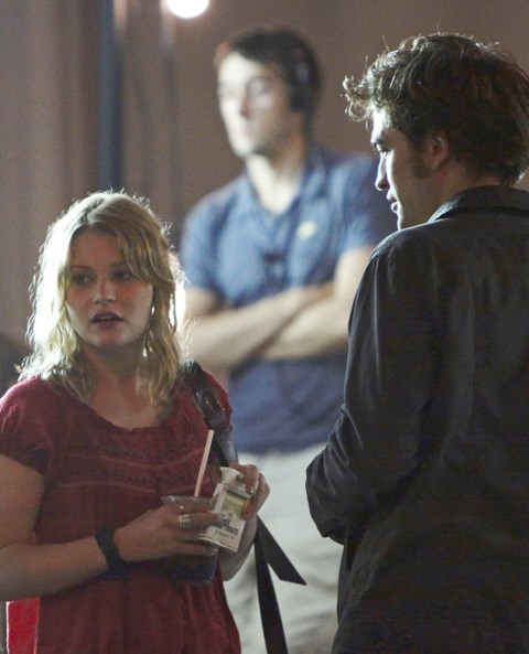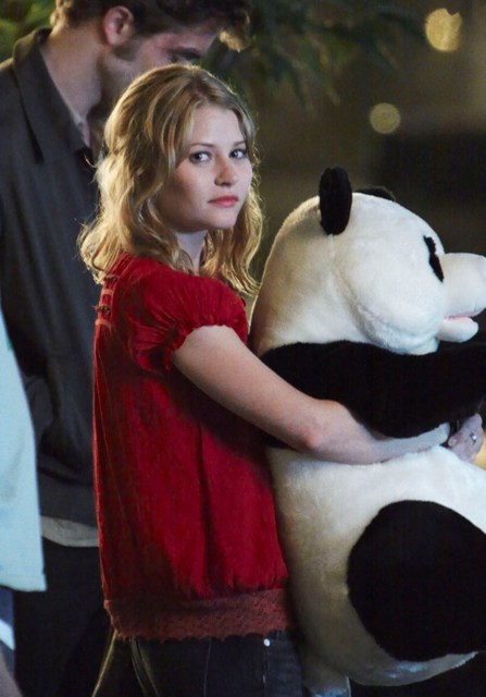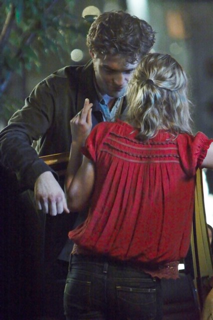 It’s Emilie de Ravin, shooting what looks like a date scene with Robert Pattinson on the Remember Me set in a series of photos that will likely be used by tabloids to suggest a budding romance between the two stars, much to the dismay of Pattinson’s lunatic fans who are probably, right now, plotting her demise.