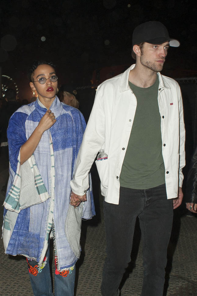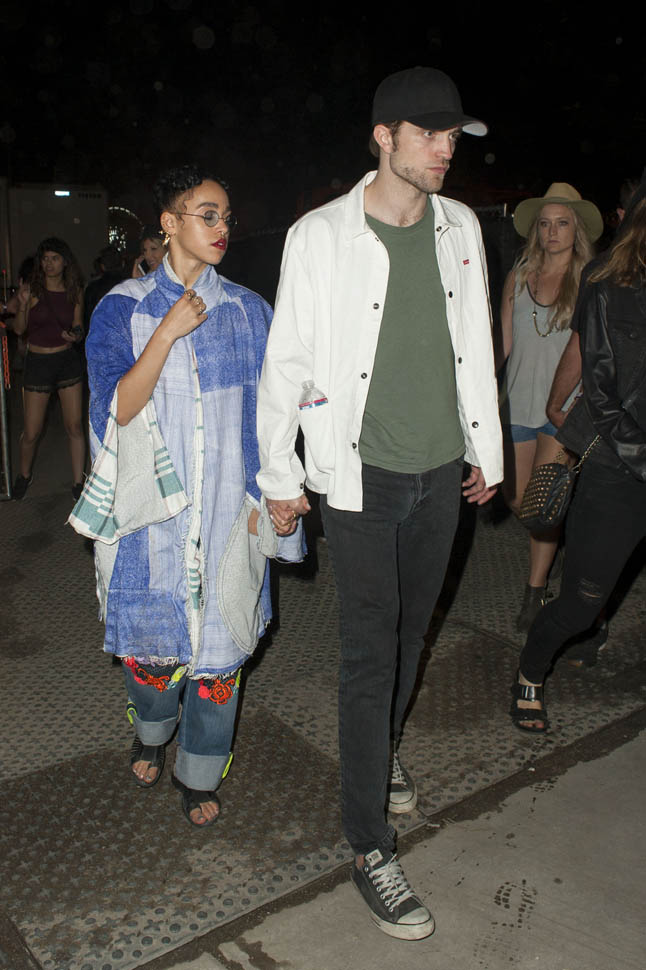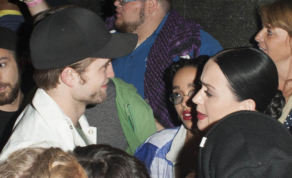 Robert Pattinson was at Coachella this weekend. Not his first time. And if he wasn’t dating one of the performers, he might still have been there. But, as it happens, he’s engaged to FKA twigs. And she was there. And he was supporting. And then they held hands and went to check out some of the other stages. And hang out with his friend Katy Perry, also a Coachella regular. Was this an introduction?
