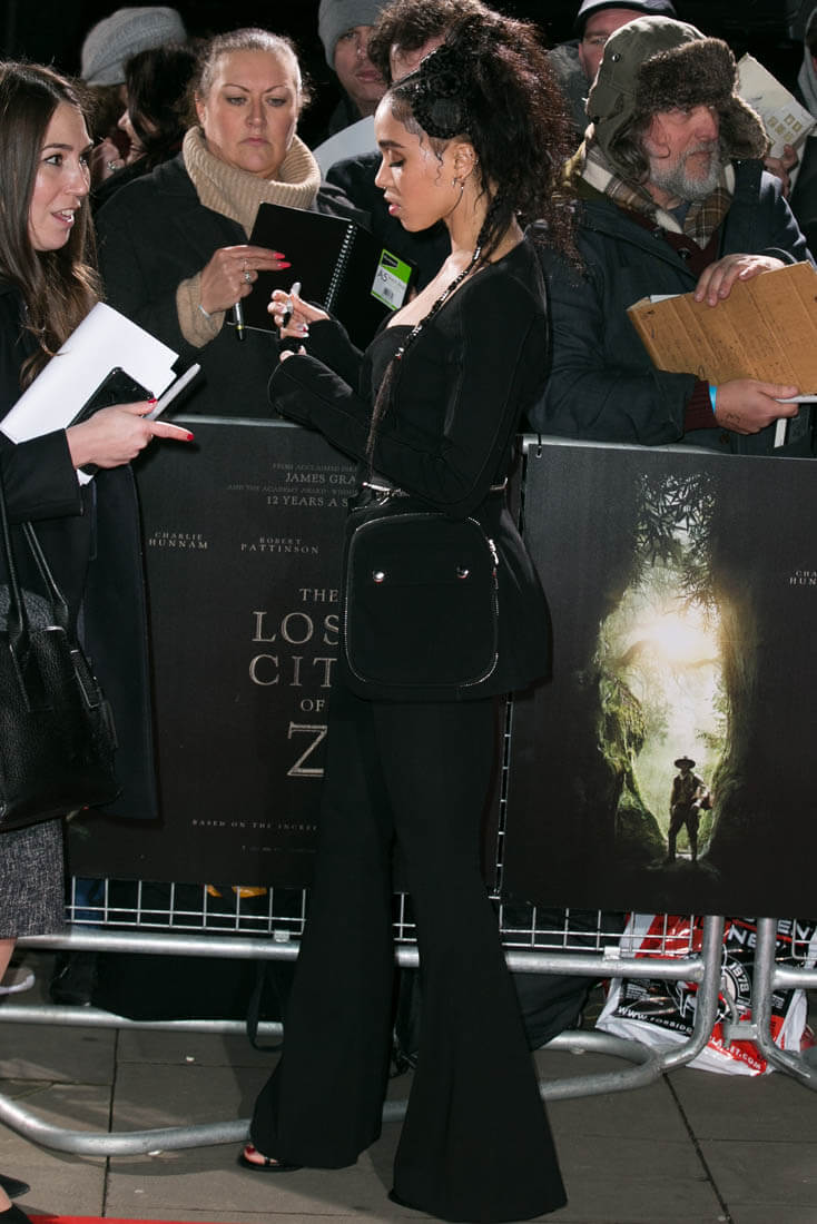 FKA twigs joined Robert Pattinson in London last night at the premiere of The Lost City Of Z. And while he gave us high fashion in Berlin the other day, he chose to dress more conservatively this time, so as to not clash with her style. She’s in a Givenchy jumpsuit. I love this jumpsuit. I love the huge double hip pockets – a designer play on the fanny pack and the zip front to a sweetheart bust. Had RP brought her new sartorial sensibility with both of them on the carpet, it may have been a bit of overkill.