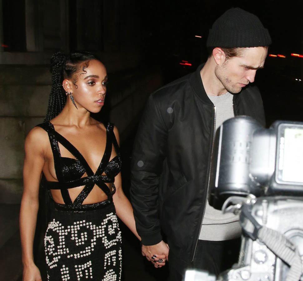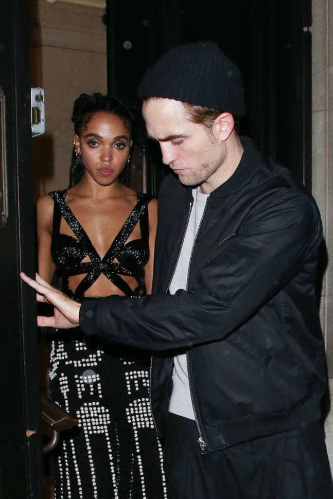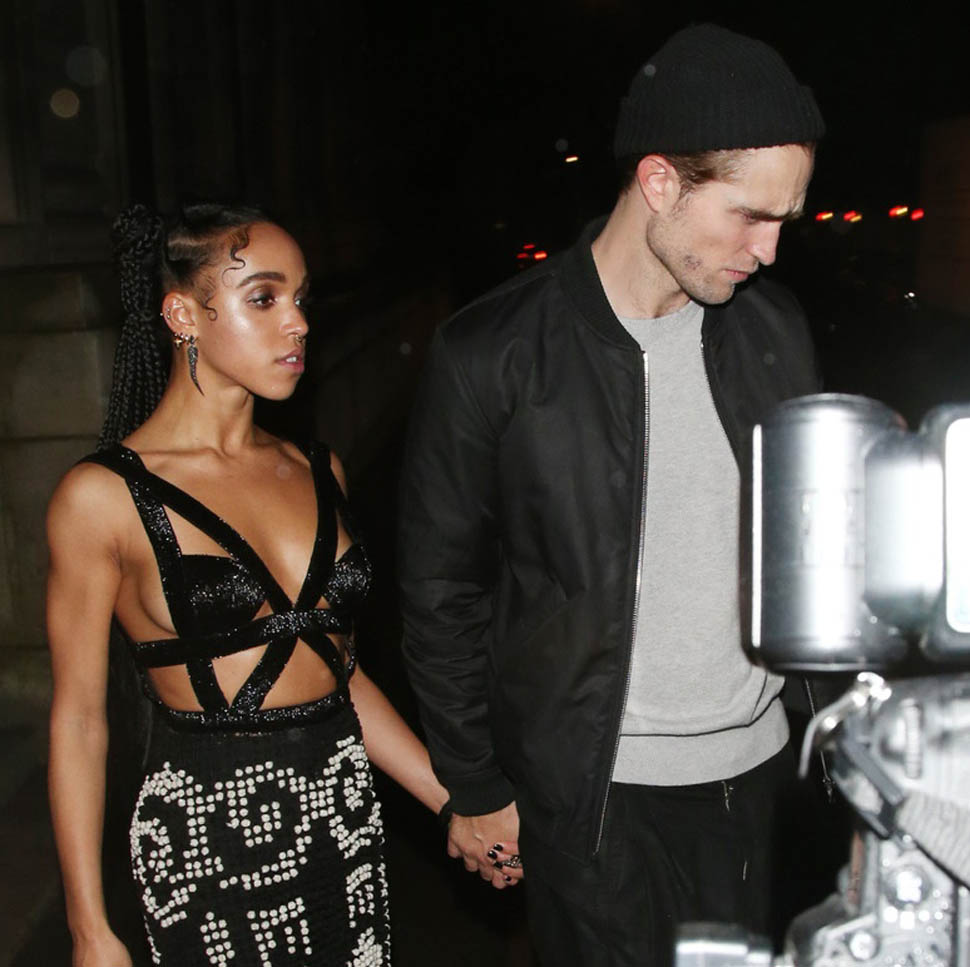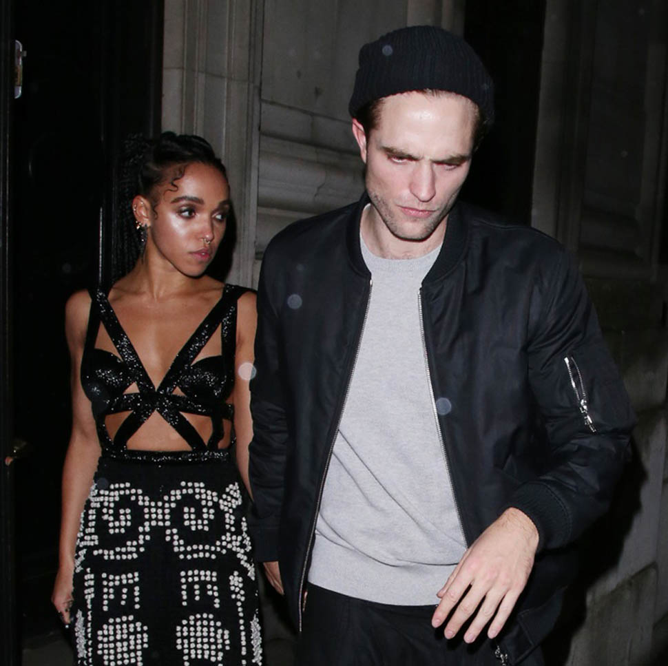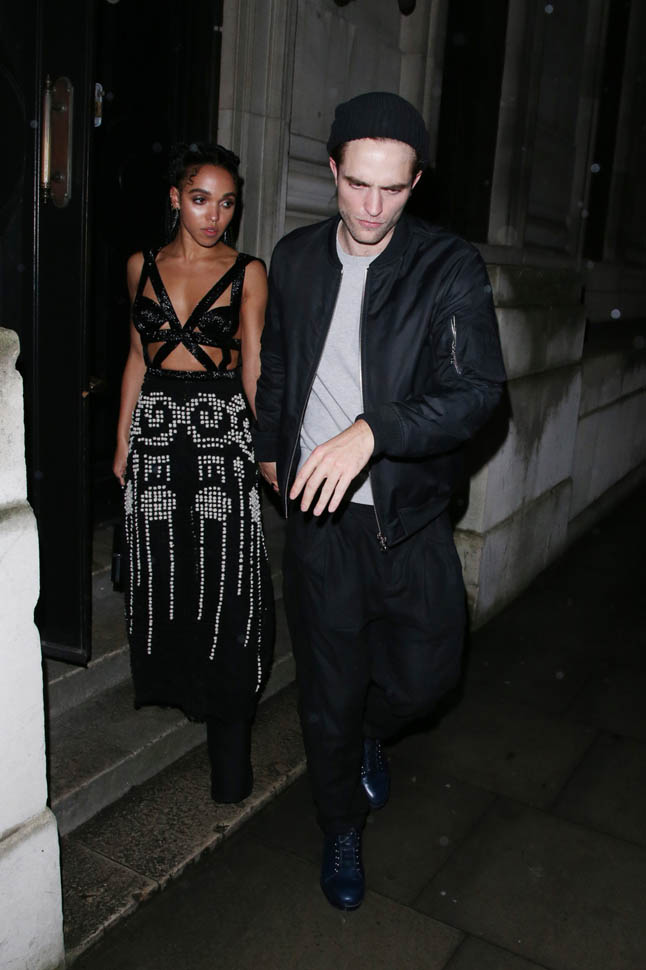 Check out this shot taken inside the Warner Music party after the BRITs last night. The photographer was allowed to shoot at a good distance. And no one is jumping into a trash bin, even though it’s FKA twigs and boyfriend Robert Pattinson. They’re together. They know that you know they’re together. And I like that they’re not trying to be super precious about it. I mean, Chris Martin would be halfway down the block by now.