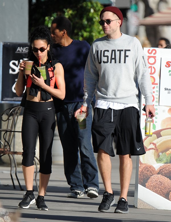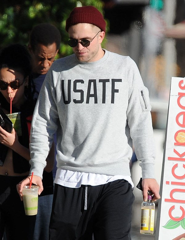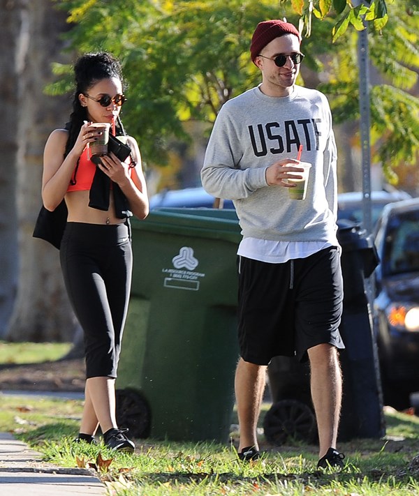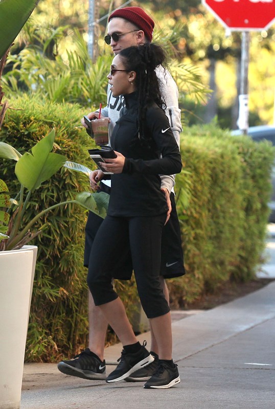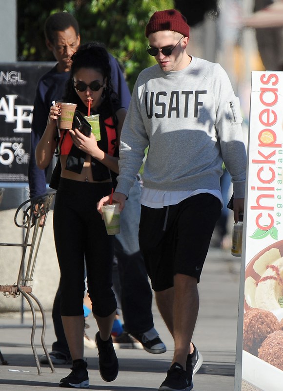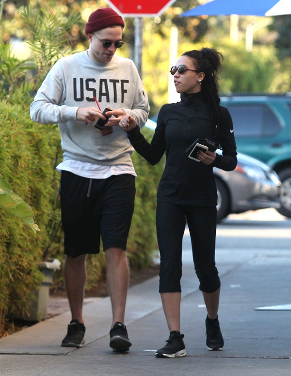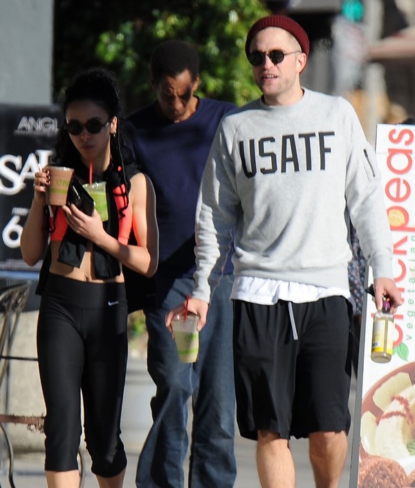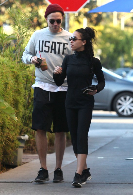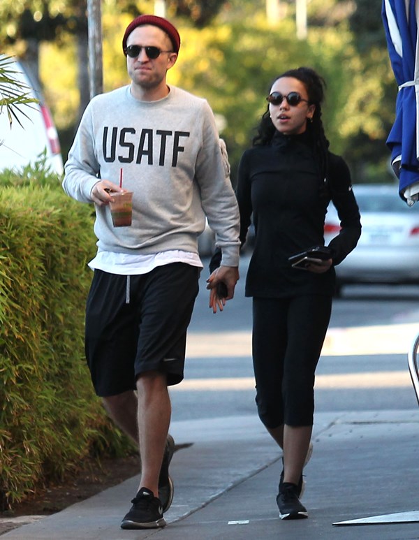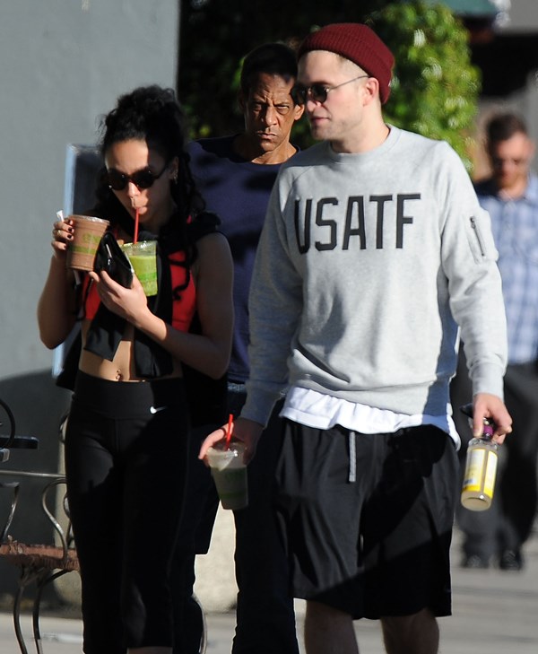 When I wrote about Robert Pattinson and FKA twigs a couple of weeks ago in NYC, and how often they were getting papped, and how that reminded me of Ryan Reynolds taking on the pap personality of the women who were in his life – click here for a refresher, Pattinson defenders were all like, yeah but her tour dates are public knowledge, as an explanation. So here they are in LA on Friday out for a walk and then lunch, nowhere near a tour venue. I don’t see a tour venue. But I do see some evidence of lust haze. And I don’t blame him.