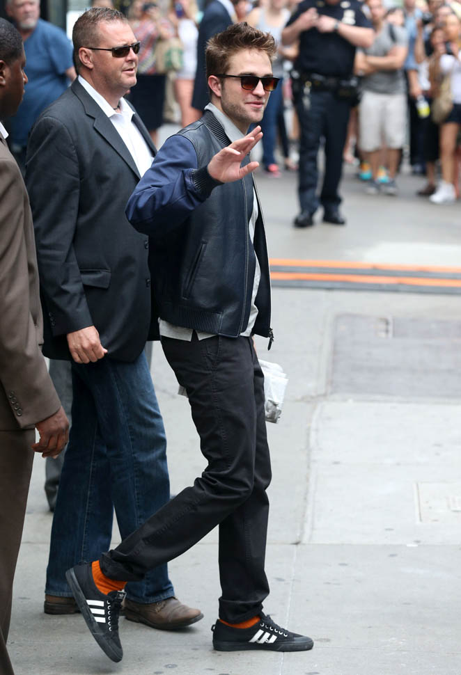 Robert Pattinson is in New York on the morning show circuit to promote The Rover. I quite like his sock choice. Out of Cannes, everyone was saying that his performance in the film is the best of his career. He has a supporting role in both The Rover and Maps To The Stars and seems to be settling nicely into a non-lead position. Play that position then. Don’t be Orlando Bloom.