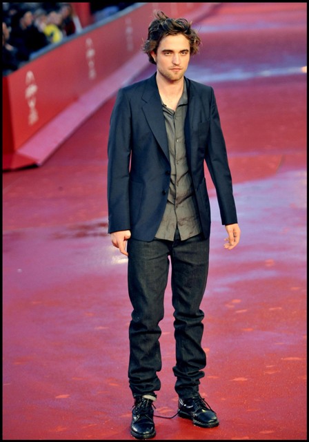 Robert Pattinson again in Rome promoting Twilight with that hair and now he appears to have developed a pants problem. No one his age, his height, and his build should be unable to wear jeans. Unfortunately he’s wearing his jeans poorly. Nothing unsexier than a poorly worn pair of jeans.
