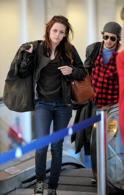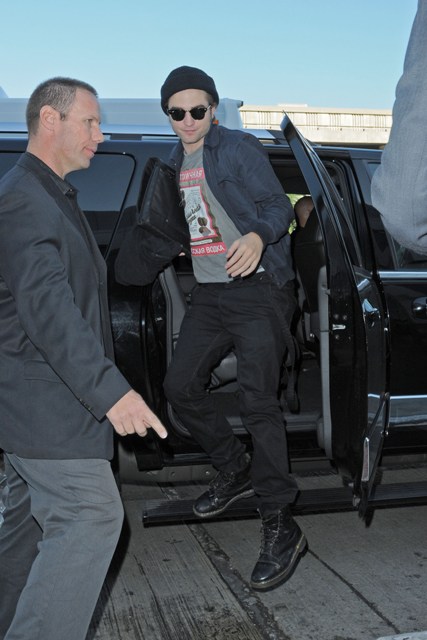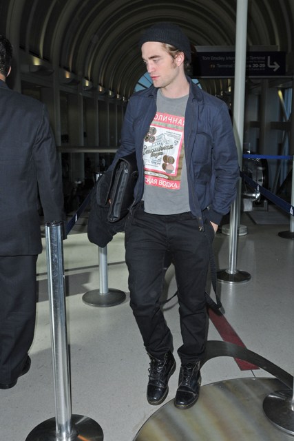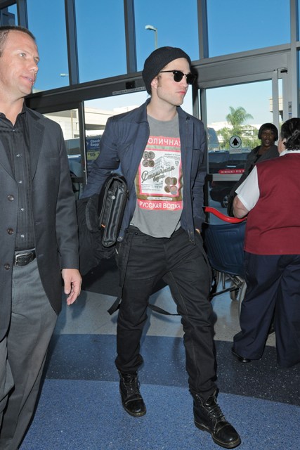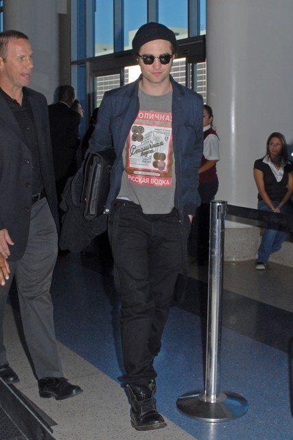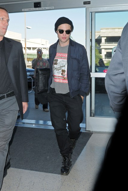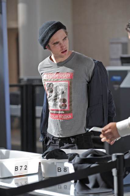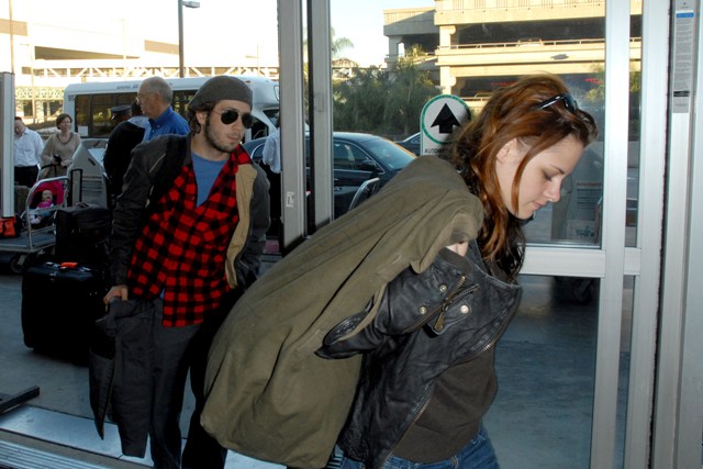 Robert Pattinson and Kristen Stewart at LAX today heading out for more publicity. Hopefully some shameless dumbasses will rush the first class cabin to ask for autographs, similar to what happened on their flight from Toronto to Los Angeles… WTF?
