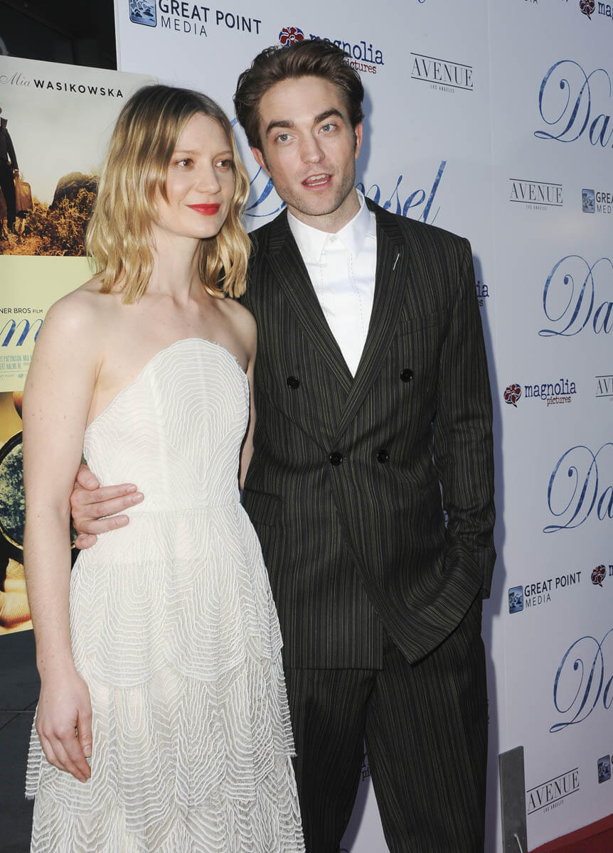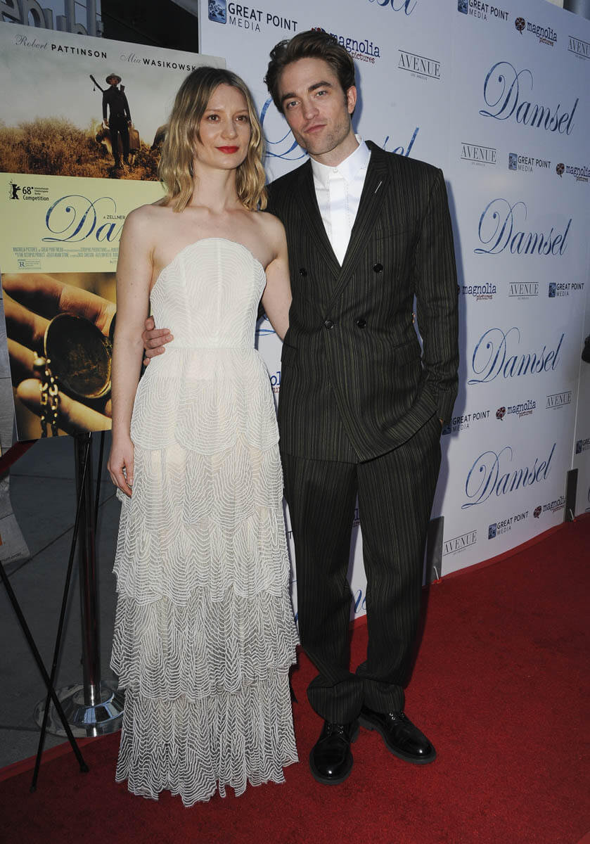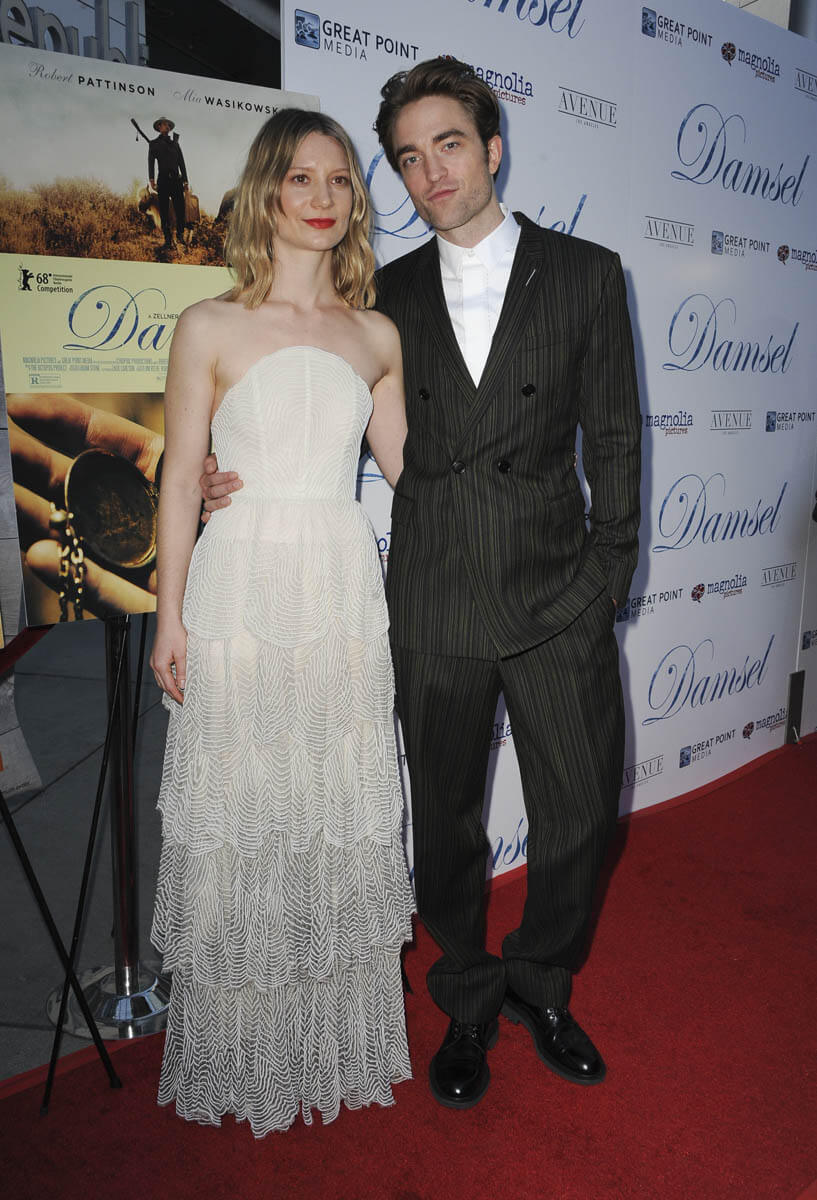 Robert Pattinson has a new movie coming out next week, the quirky western Damsel in which he plays a lovelorn sap with a miniature horse named Butterscotch, trying to woo a woman who has no visible feelings for him. He co-stars with Mia Wasikowska, and they both turned out for the premiere last night. I don’t super love the buttoned-to-the-neck shirt he’s wearing, but I LOVE the striped suit. He’s bringing a little Berlin to Los Angeles. And is it just me or are Dior’s gowns better when they’re relatively simple? They look great. Are we still maybe rooting for them? I could be into this pairing. They’ve both transcended their YA franchises to become consistently interesting, challenging performers, they both prefer flying under the radar these days. Gossip Genie Mia or Emma Watson?