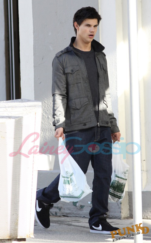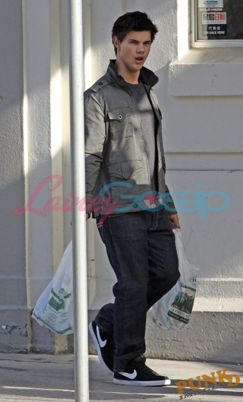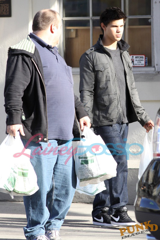 Also bringing the cutes – Taylor Lautner with his dad shopping for groceries. He’s still a minor, it’s the law for a parent or guardian to be around for filming.