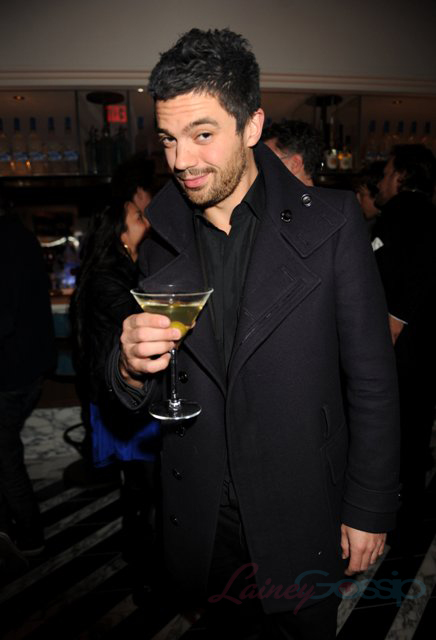 Dominic and his blonde friend – rather affectionate but in a sisterly way. Seemed to know a lot of people there, was enjoying the cocktails, then spent the latter part of the evening in deep discussion with two dudes. Never took his pea coat off. In person he’s sexy in a kind of you’re-a-weird-looking-guy-but-it-works way. Seems very personable, social, you’d want to be his friend.