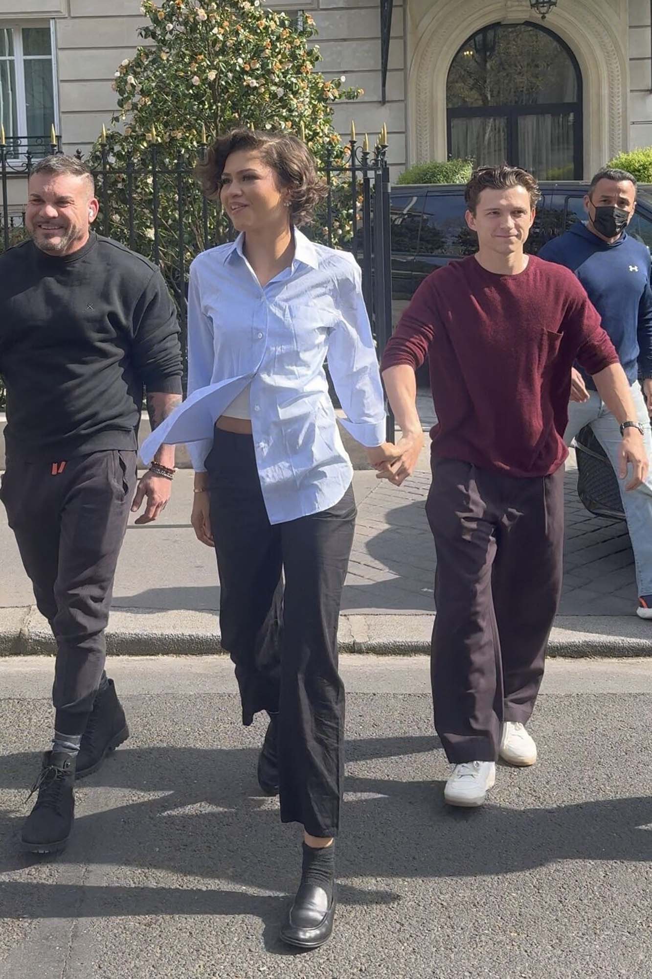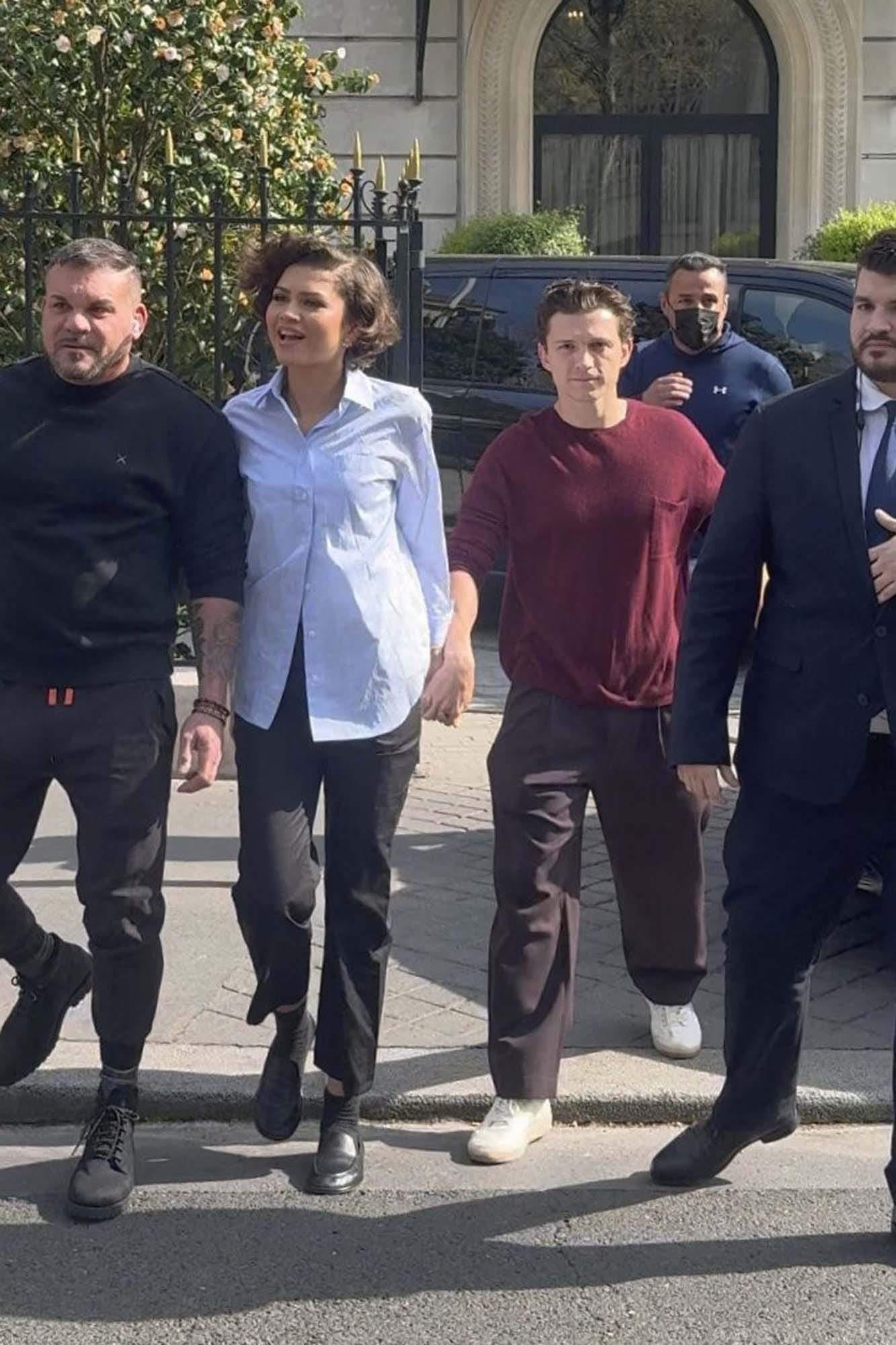 While his wife/partner, Suki Waterhouse, was in New York hanging out with BTS yesterday, Robert Pattinson was photographed in Paris after dinner with his mother, Clare. Today his co-star Zendaya was seen in Paris with Tom Holland.