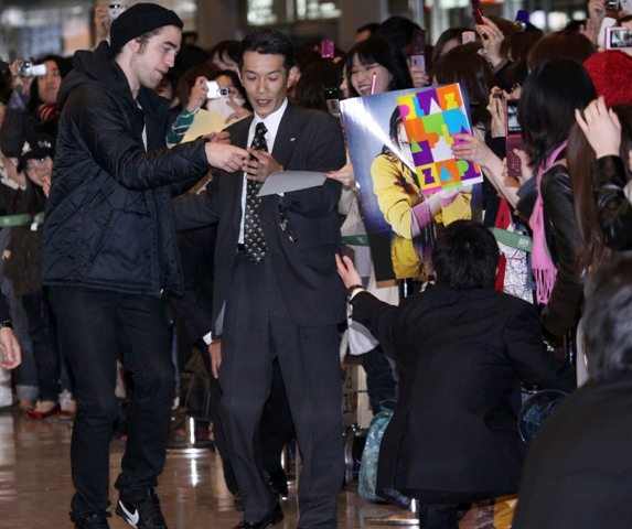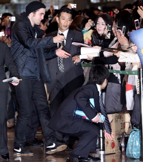 Rob was seen leaving the party alone and then at the airport the next morning, departing LA and arriving in Tokyo on Tuesday in advance of the Twilight Japanese premiere. But it’s too late…