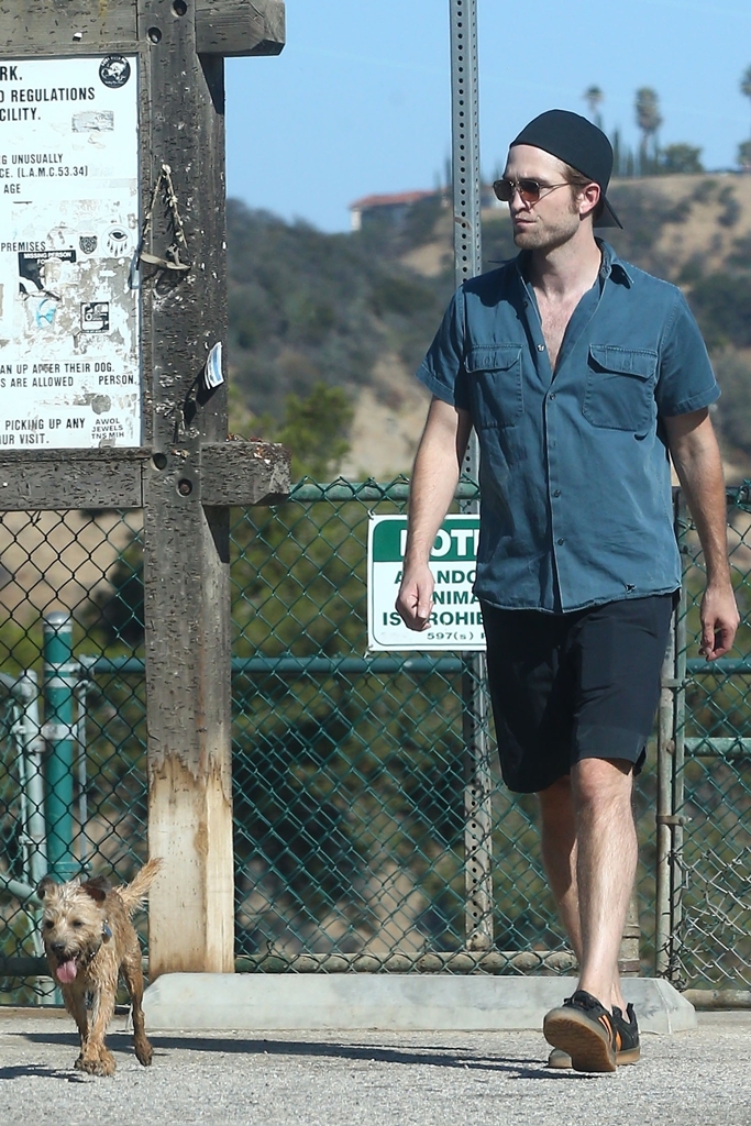 Here are a couple of things to consider, before you make your decision. Rob was photographed a few times in July hiking with a dog, the dog he shares with FKA twigs. The photo of Rob below with the dog is from July 17th.