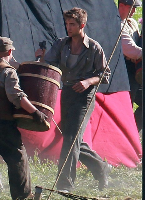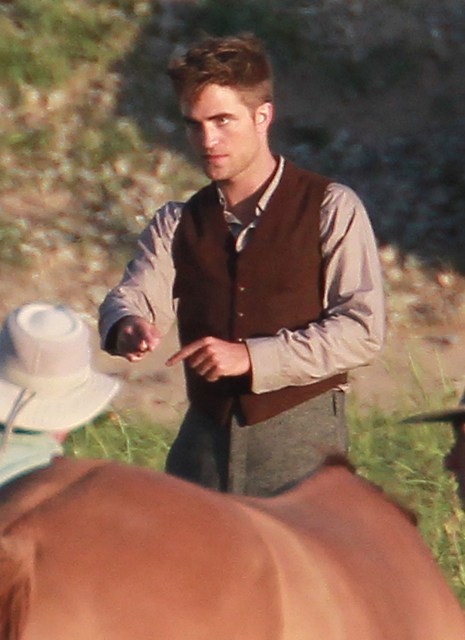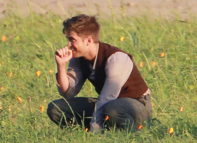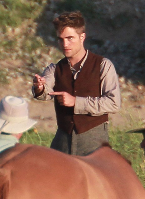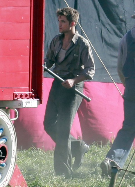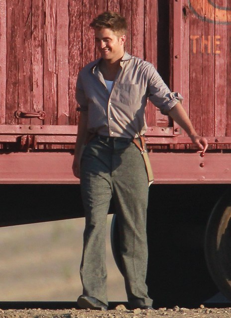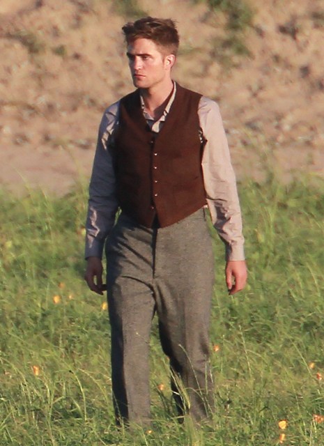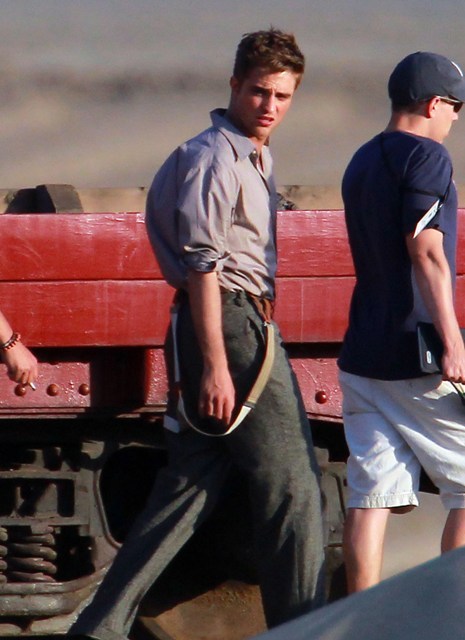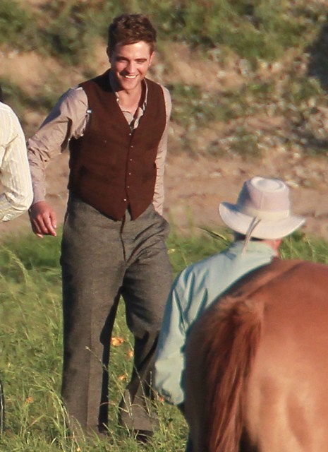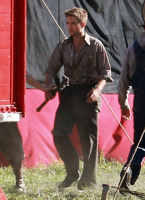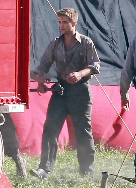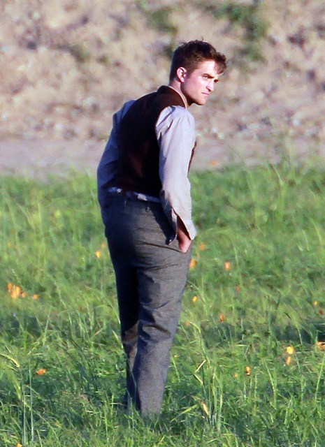 This new haircut however is very promising. And these photos of him on the set of Water for Elephants, with the apple cheeked glow of a long day’s work in the field, youthful and exuberant, without a trace of his cheese vampire limp dick, well now this I can come around to, even with those old fashioned pants accentuating his mothering hips.