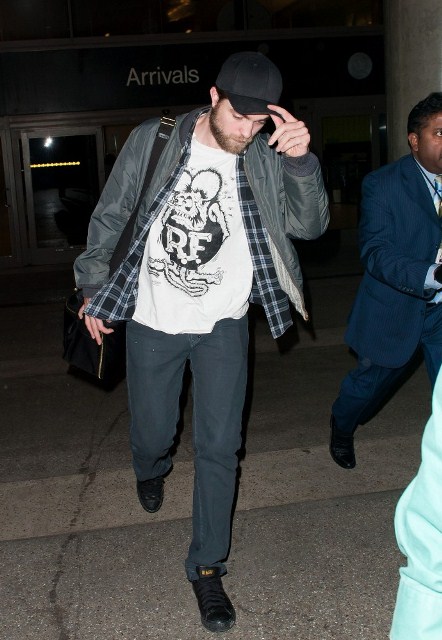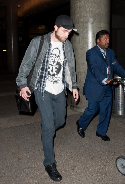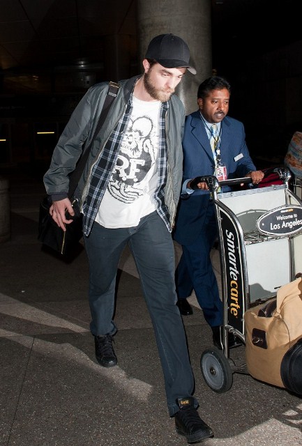 Here’s Pattinson arriving at LAX yesterday and all Twi-Hards, a wonderful way to call in the New Year for Twi-Hards because he’s there to rejoin his girlfriend Kristen Stewart. That is great and wonderful.