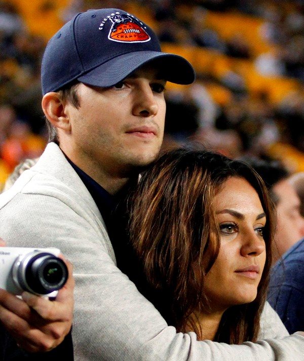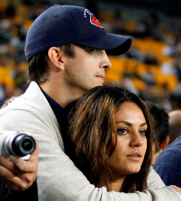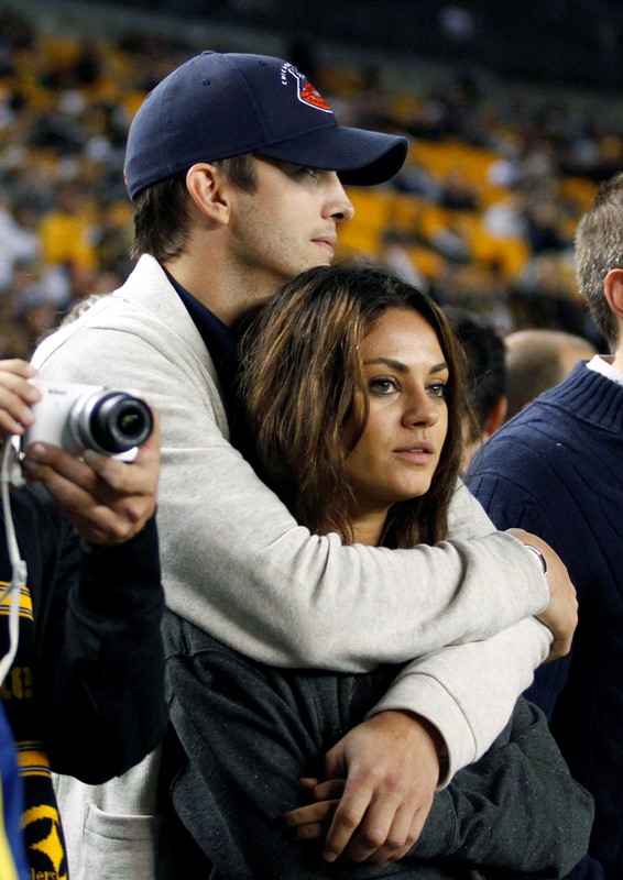 That's the f-cker in that situation, right? I can't with him, that prick, and all his fraud, but aesthetically, based on pure physical, those two are the sex. Check them out at the Bears game yesterday. He's been all about the Bears forever. And his partners go Bears for him too. Are you allowed to have your own team when you're Ashton Kutcher's girlfriend?