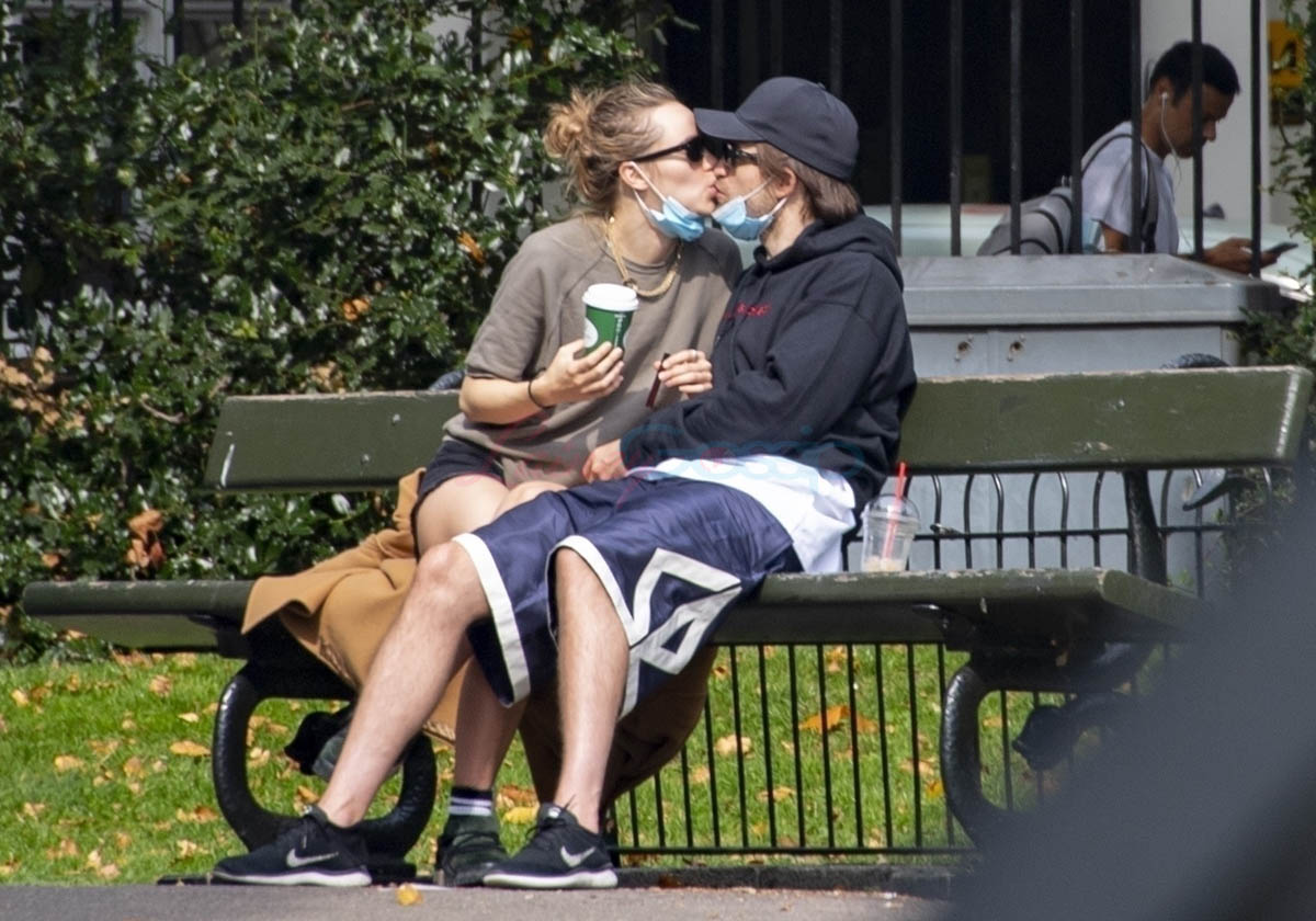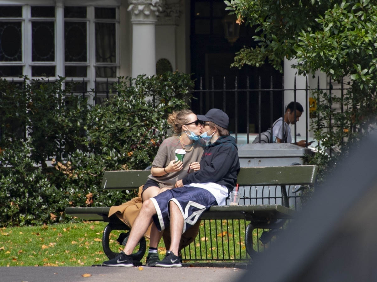 So… the last time Robert Pattinson made headlines it was pretty recent, because production on The Batman had to be halted after someone tested positive for COVID-19. That, reportedly, was Robert Pattinson, although no one official has officially confirmed it’s him. But Warner Bros hasn’t denied that it’s RP either. Vanity Fair was the first to report the news on September 3. In England you’re required to self-isolate for ten days. It’s been ten days. And Robert was seen with Suki Waterhouse yesterday at a park in London, giving us a relationship update: yes, they’re still together and they seem happy together. And I guess he’s no longer ‘rona-positive since they’re kissing.