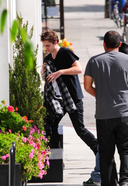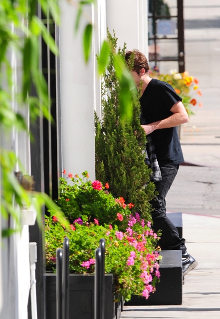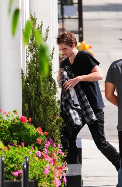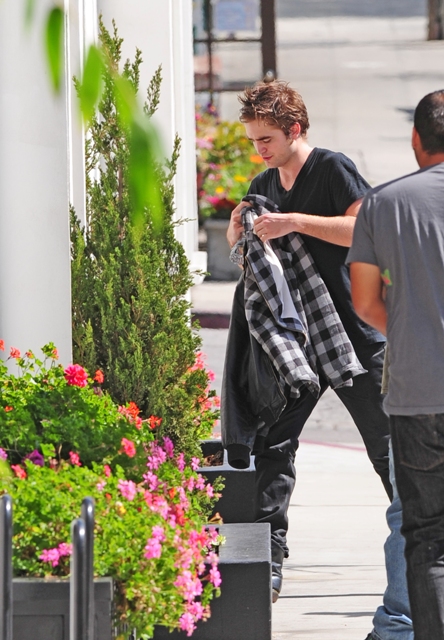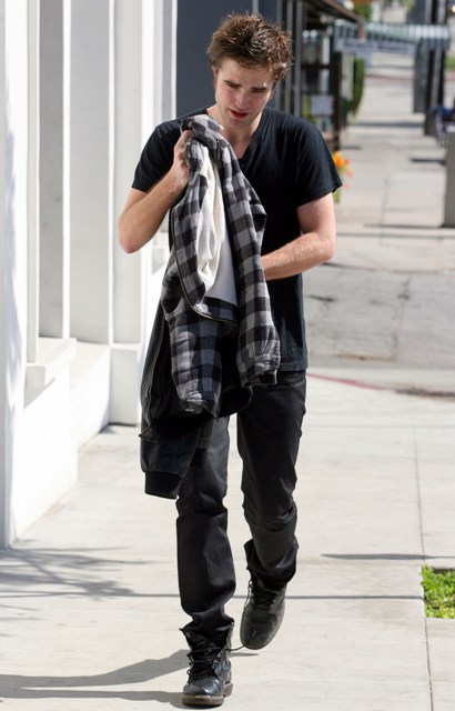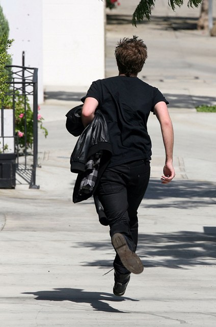 This is Robert Pattinson out and about in LA yesterday, running back to his hotel with wet hair, looking pale and … he’s better straight on than in profile, non? The nose, I think. And .. the gait, the run. This doesn’t work for me. But it will elicit at least another hundred hate messages.