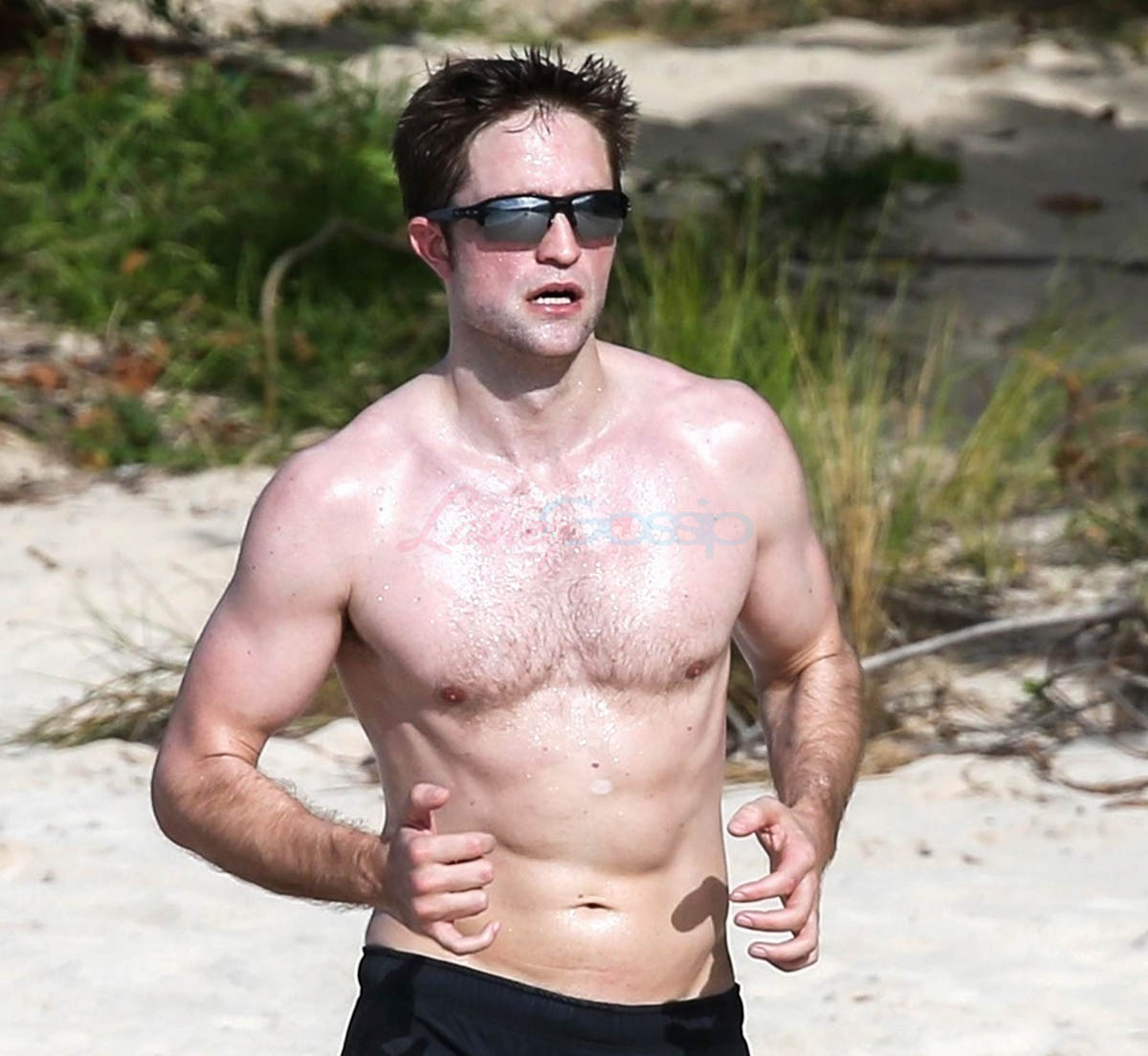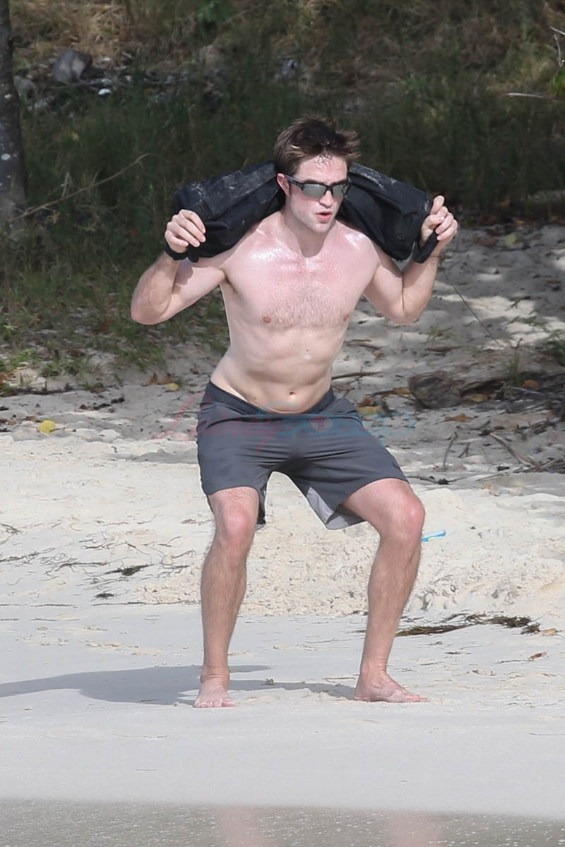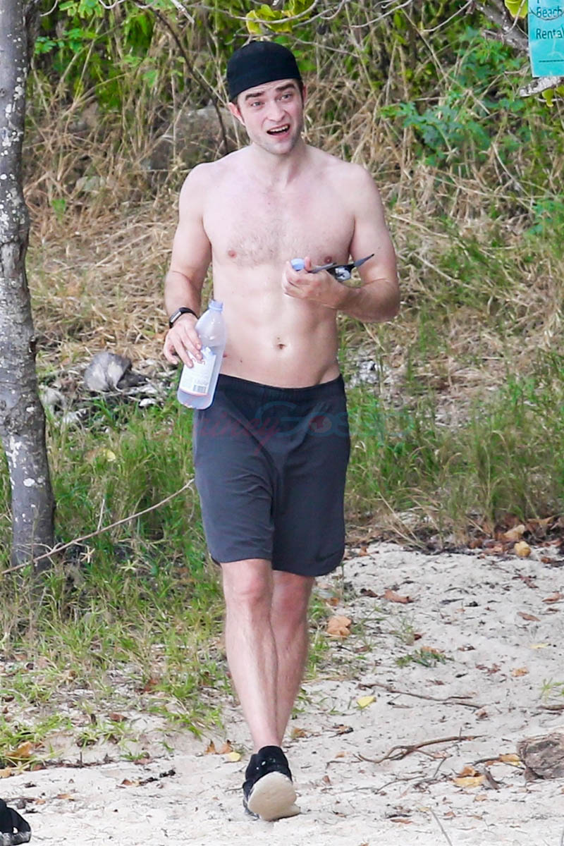 Because normally there really isn’t that kind of detail. Normally it’s, like, here’s Robert Pattinson in Antigua working out on the beach. Also, these shots are exclusive to one agency. And I’m not sure how often there’s a photographer parking herself at Half Moon Bay in Antigua hoping for someone to show up. So… was this tipped off? Intentionally? Did Robert Pattinson approve of it?