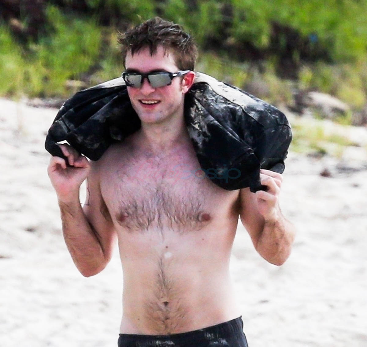 Yesterday I wrote about Bradley Cooper at the Super Bowl being a luck-bringer to the Philadelphia Eagles, remember? Bradley Cooper is a Tiger, just like Robert Pattinson. Now here’s Robert Pattinson, bringing all the luck (attention, exposure) to Half Moon Bay in Antigua, whether he actually intended to or not. Maybe he doesn’t mind us seeing how fit he is these days.