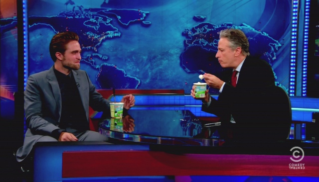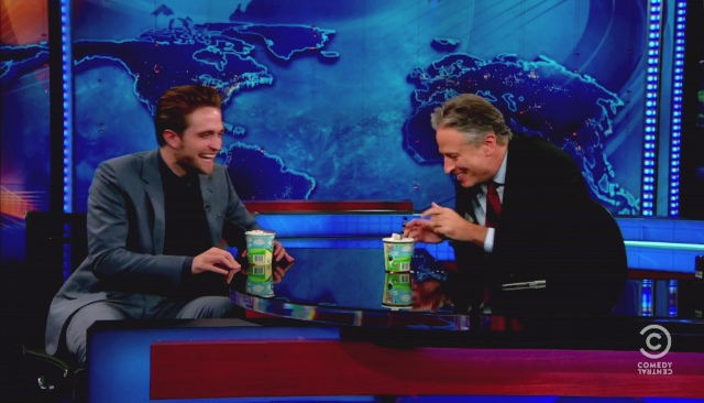 Comforted perhaps by Jon Stewart’s generous host-ly embrace, Pattinson was predictably awkward, yes, but also gracious and game. After all, as indelicate as this sounds, he was publicly cuckolded inside a Mini Cooper. There are people who can barely leave the house when they have a pimple, let alone having his girlfriend get papped kissing another man, and the fact that he’s a celebrity, a demographic not exactly renowned for showing much character.