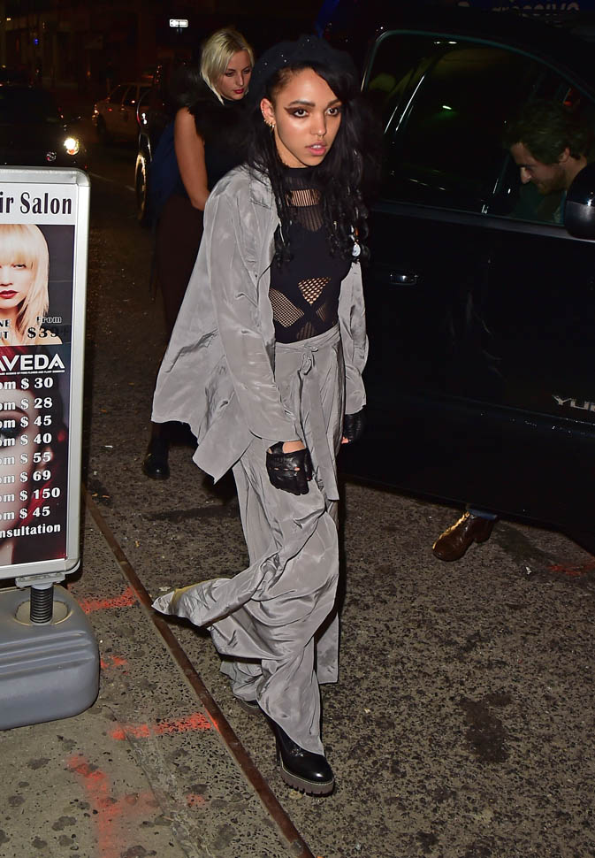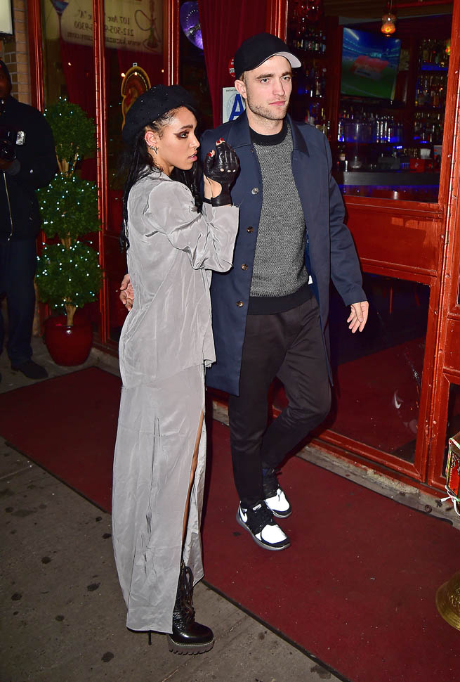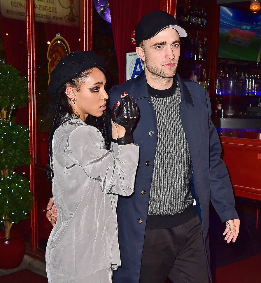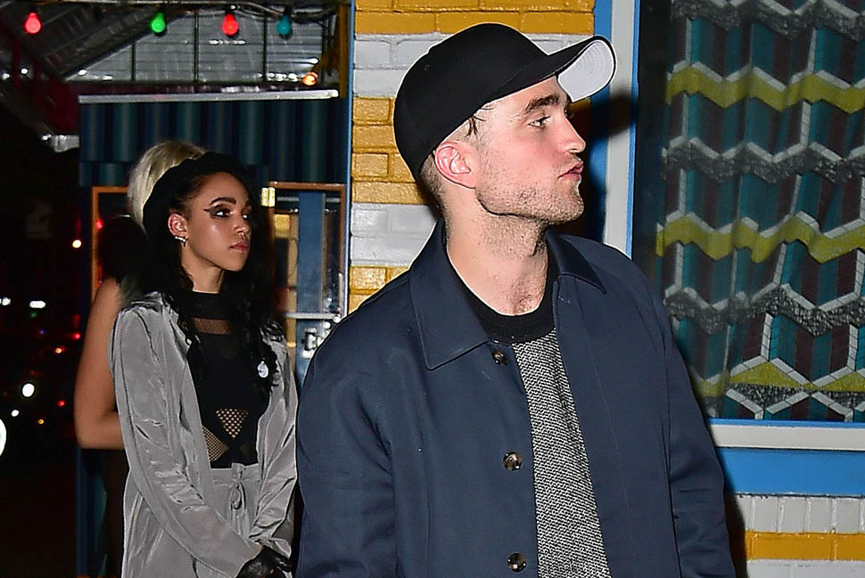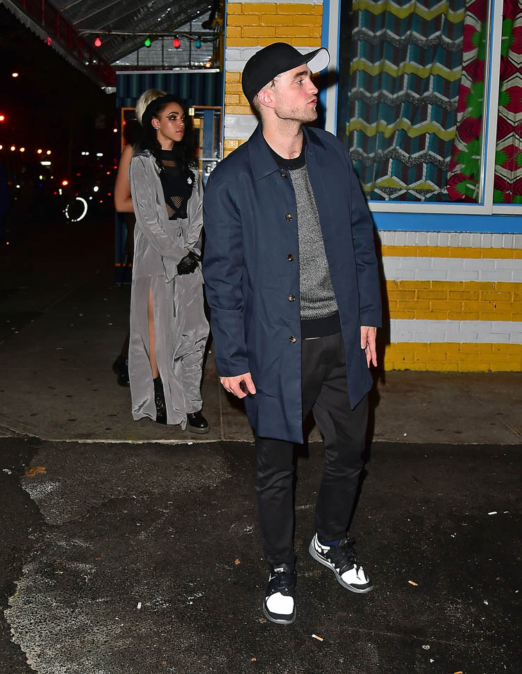 FKA twigs performed in New York last night. Her boyfriend, Robert Pattinson, was with her, hiding his new haircut underneath a ball cap. The sides appear to be shaved with a clump hanging out the back. Someone needs to knock that hat off his head so we can see.