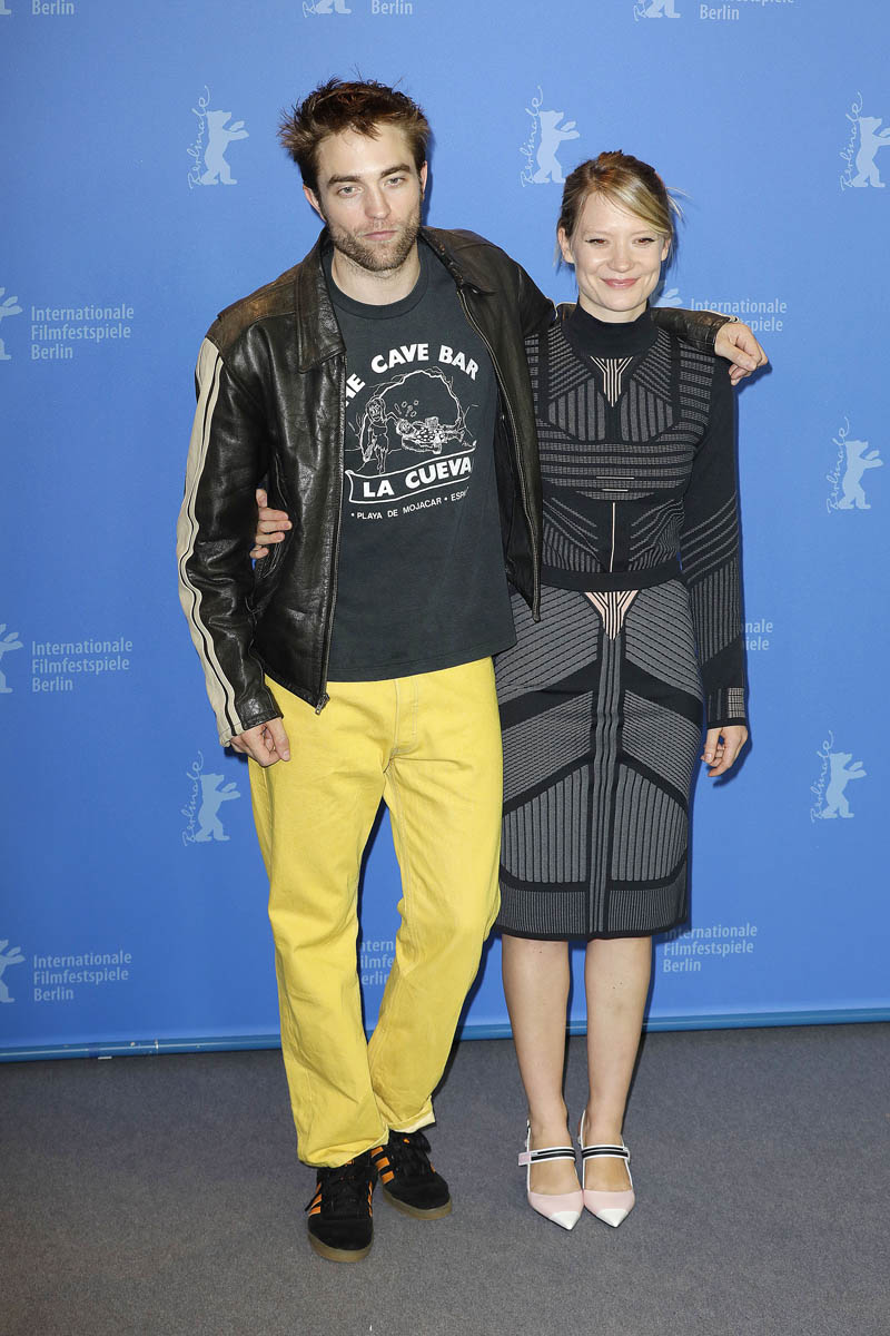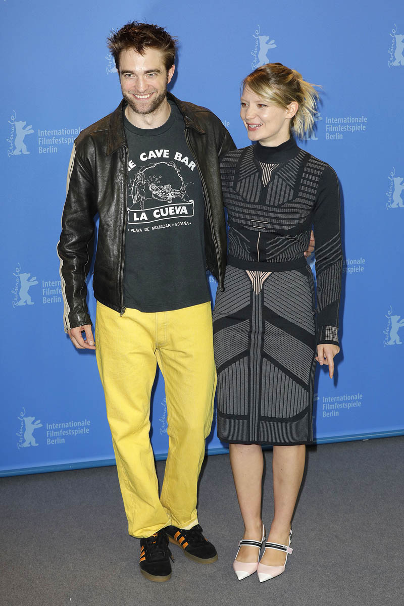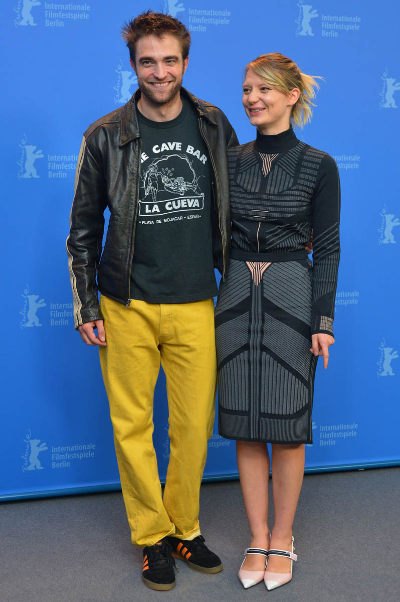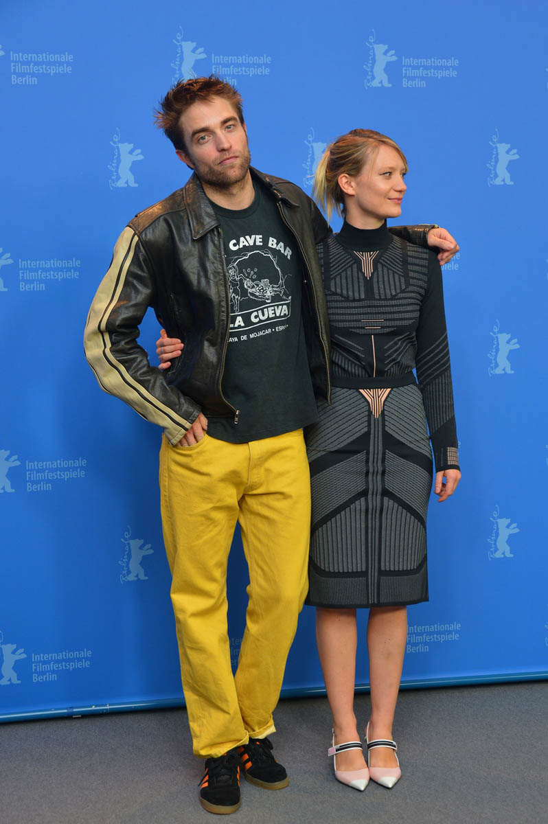 Let’s interrupt our Jennifer Aniston divorce coverage with some shots of Robert Pattinson in yellow pants at the Berlin Film Festival with Mia Wasikowska. He does this once in a while… actually no, he does this specifically at this time. In Berlin!