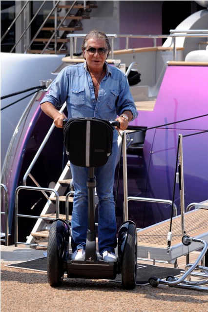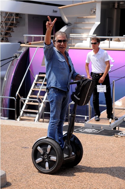 But while I’m delighted to be back in Vancouver, I am a little sad that I left Cannes without a Roberto Cavalli sighting. Especially a Roberto Cavalli sighting of him on his …ride. Cavalli cruising along the Croisette, upright on his Segway, as pictured today, is an annual tradition, and one of the best things in my life.