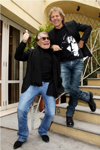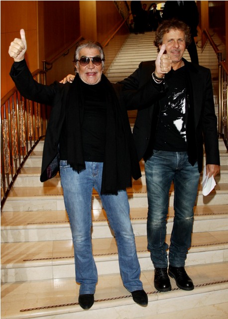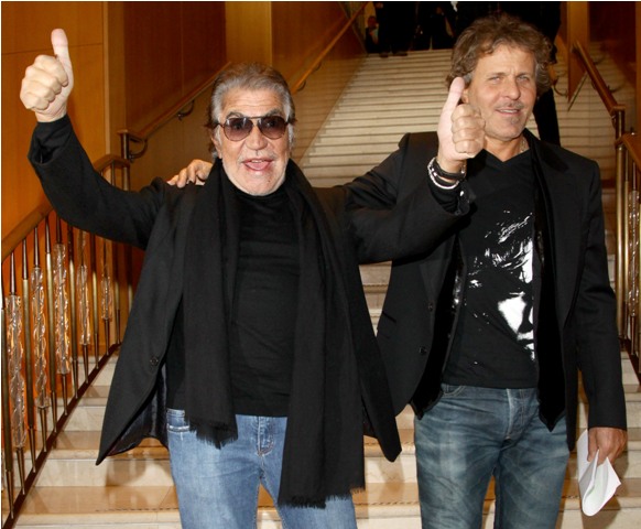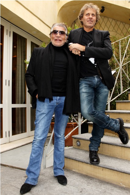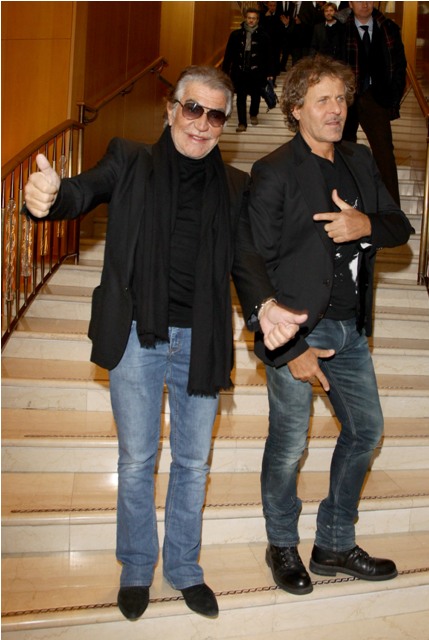 It’s never a bad day when Cavalli comes out to play. This is Roberto in Milan today with Diesel designer Renzo Rossi at a press conference to announce a partnership between his Just Cavalli and Staff International for distribution. In other words, more Cavalli everywhere.