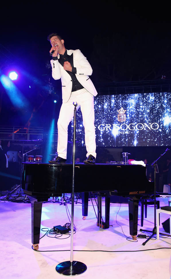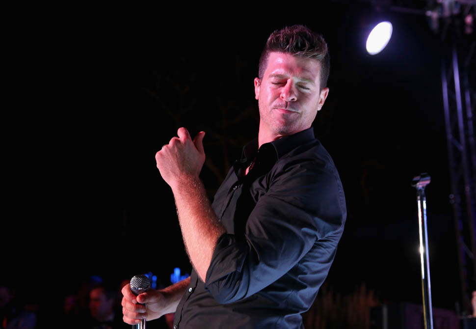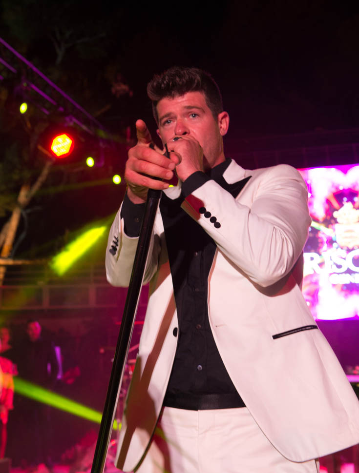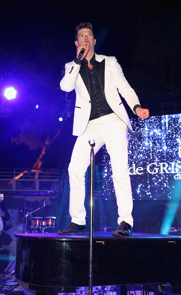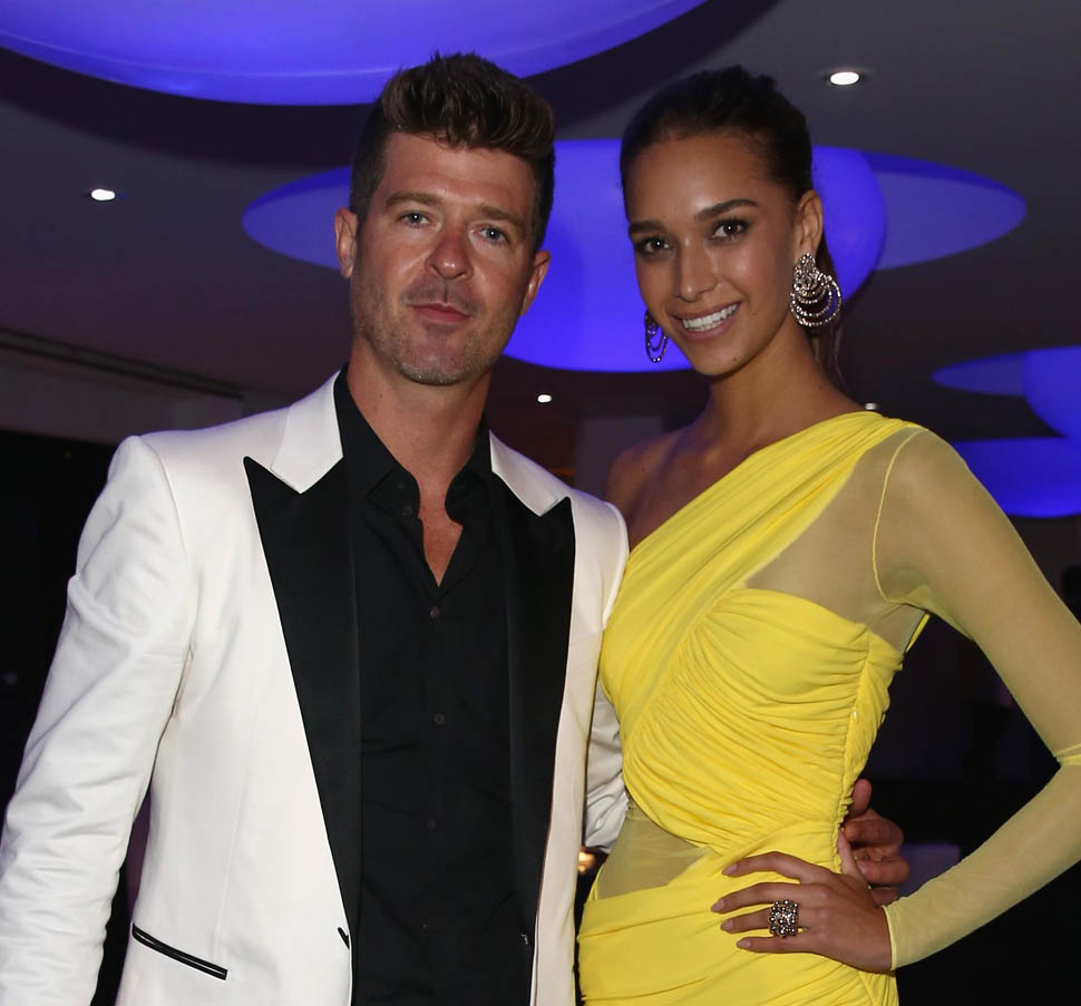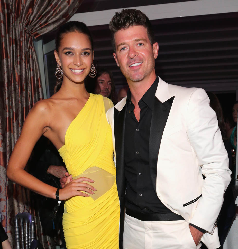 Because it’s only Wednesday. There are still several days of festival excess to go. WHY would he promise anything to anyone? I wonder if this is the kind of advice he wants to give to Robin Thicke. You’ll recall, Leo was the president of the Congratulations You Cheated On Your Wife And She’s Leaving You Let’s Party club when Paula Patton finally decided she couldn’t stand it anymore. Robin has become a Cannes annual now too, performing last night at a party, joined by his 19 year old (or maybe she’s 20 now) girlfriend April Love Geary. Leo approves of the age. But he probably doesn’t understand why Robin decided to bring her when he could have totally left her at home and sampled the entire Riviera.