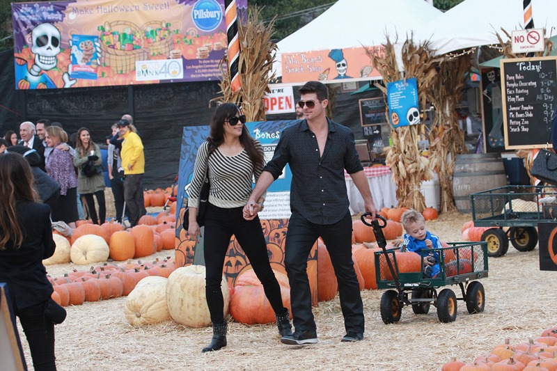 There’s apparently only one pumpkin patch in LA. So Robin Thicke and Paula Patton decided to go there this weekend and make out just to make sure that if you didn’t read all the interviews they’ve been doing about their relationship, and how much they like to f-ck, and how big his dick is, and how they get busy to his music, etc etc etc, you have a visual now so that you can imagine how much they like to f-ck, and how big his dick is, and how they get busy to his music.
