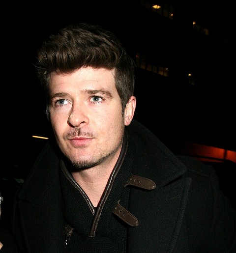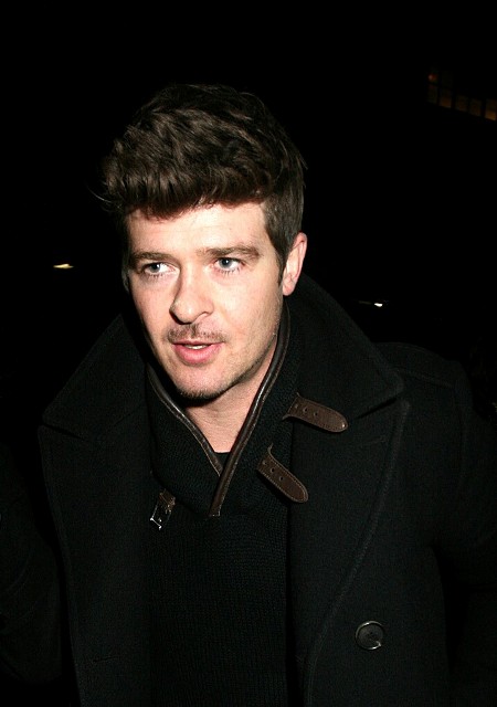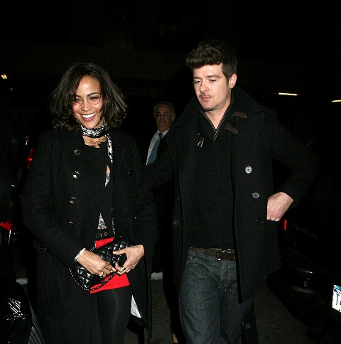 Robin Thicke and his wife Paula partied at Butter last night. Robin also brought along his perv ‘stache and rocked a pompadour. Not exactly the sweetest look ever.