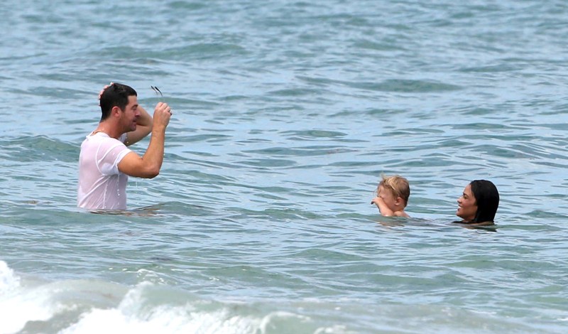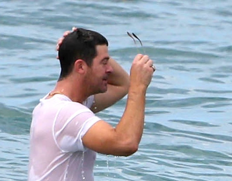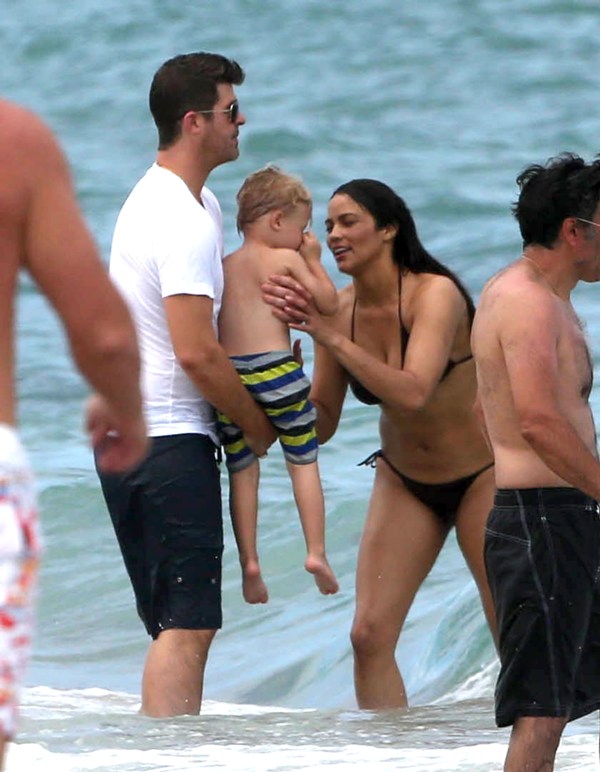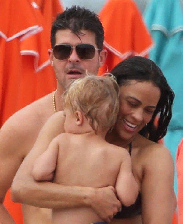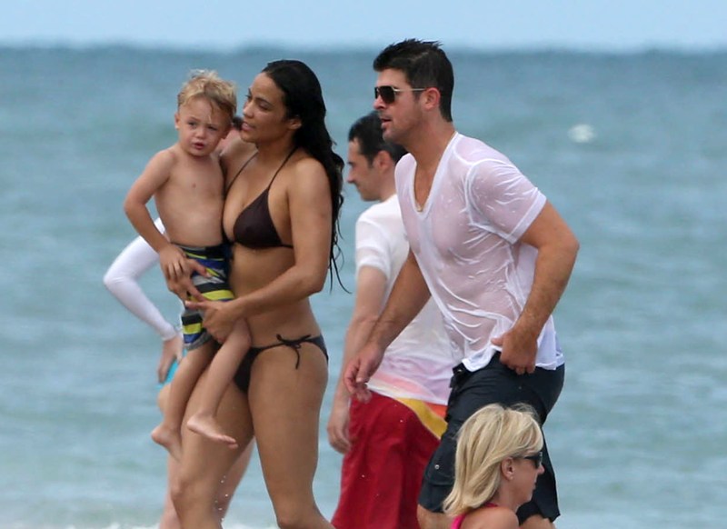 This is a photo taken at a VMAs after-party of Robin Thicke posing with some random with his finger trying to go up her ass – check out the mirror in the background. The picture was posted on Twitter and then retweeted at his wife Paula Patton. Yesterday Thicke and Patton were papped on the beach in Miami with their young son Julian. Coincidence or conspiracy?