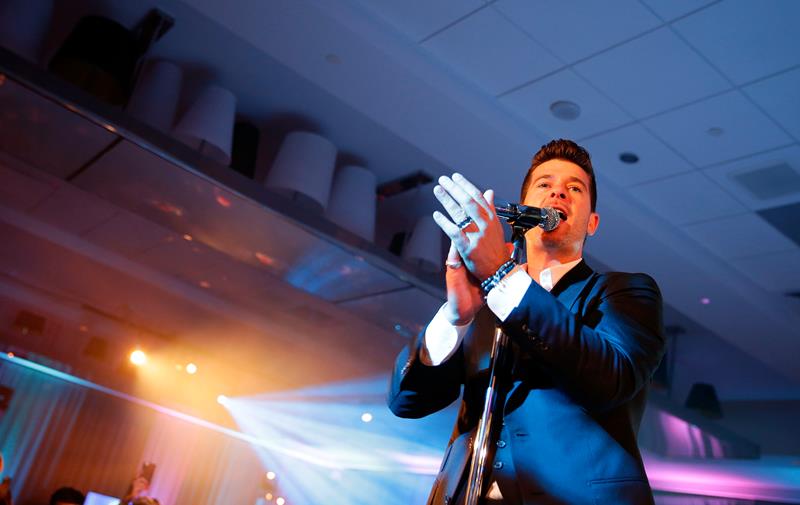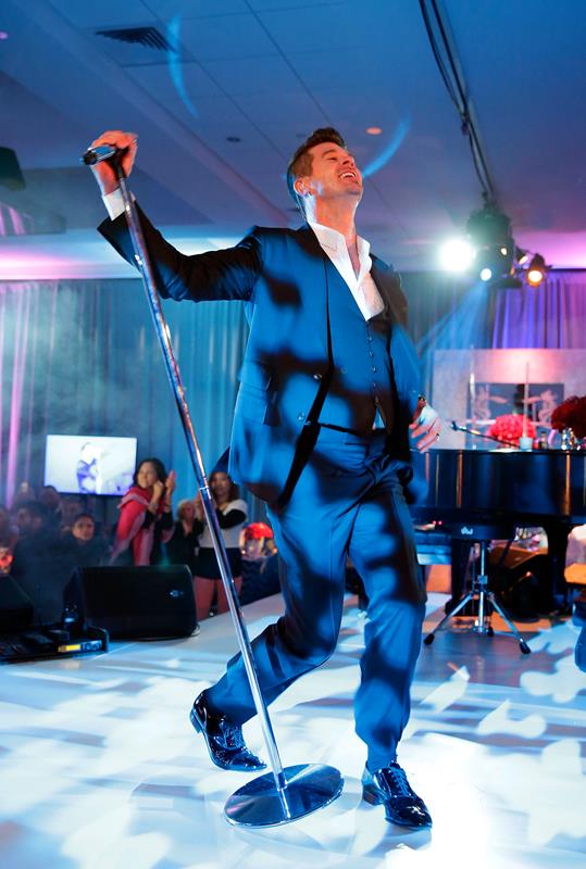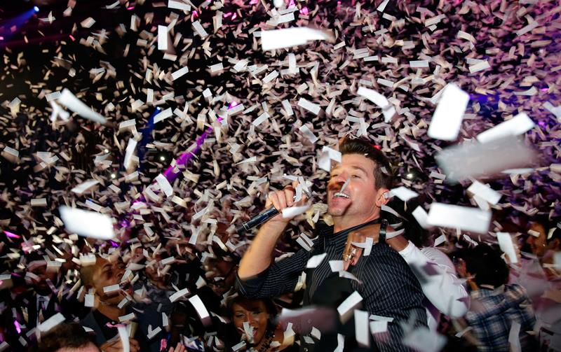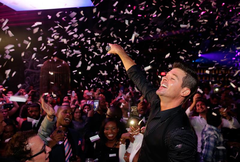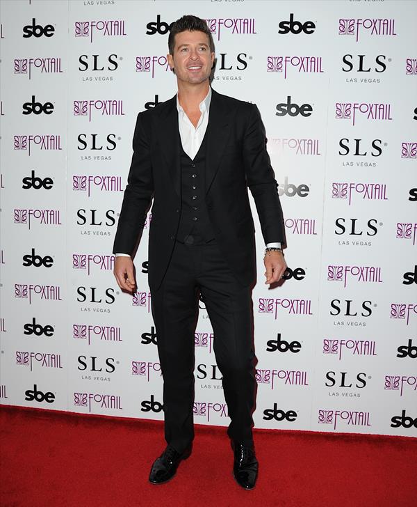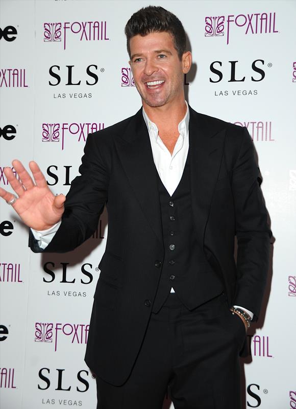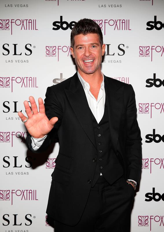 Robin Thicke was in Vegas for New Year’s with his girlfriend, April Love Geary. She’s 19. They had dinner together. Then he went to the club and she…went back to their suite? You have to 21 to get in to the bars. So Robin was alone at midnight. But not really. Page Six reports that after his performance he was “mobbed by girls”.