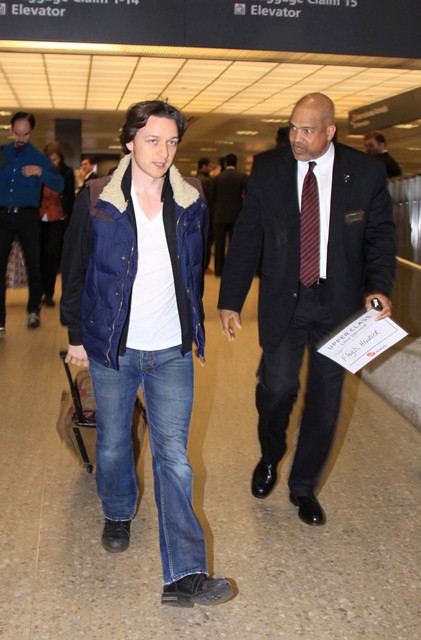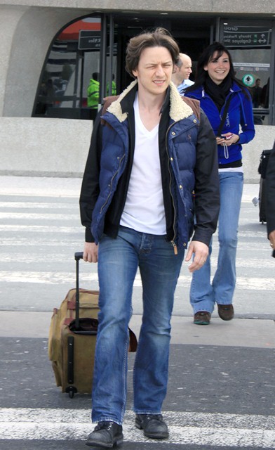 As for James McAvoy, it’s been two weeks since his last post. Once every two weeks seems too seldom, but it’s much better than once every two or three months. I won’t complain. Here he is arriving at the airport and not looking much different on the red carpet. He doesn’t need a lot of work anyway.
