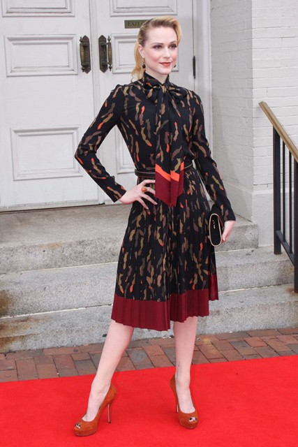 Evan Rachel Wood on the other hand definitely required more preparation time. Maybe too much. She’s 23. She’s beautiful. But there’s something a little too… um… Dita von Teese-y happening here, non? The hair, definitely. The dress, totally. Even the makeup, right? It’s a little too close of an association. And really rather unnecessary. With those cheekbones, that youthful skin, her freshness… I wish I could see her more stripped down more often, no pun intended I guess.